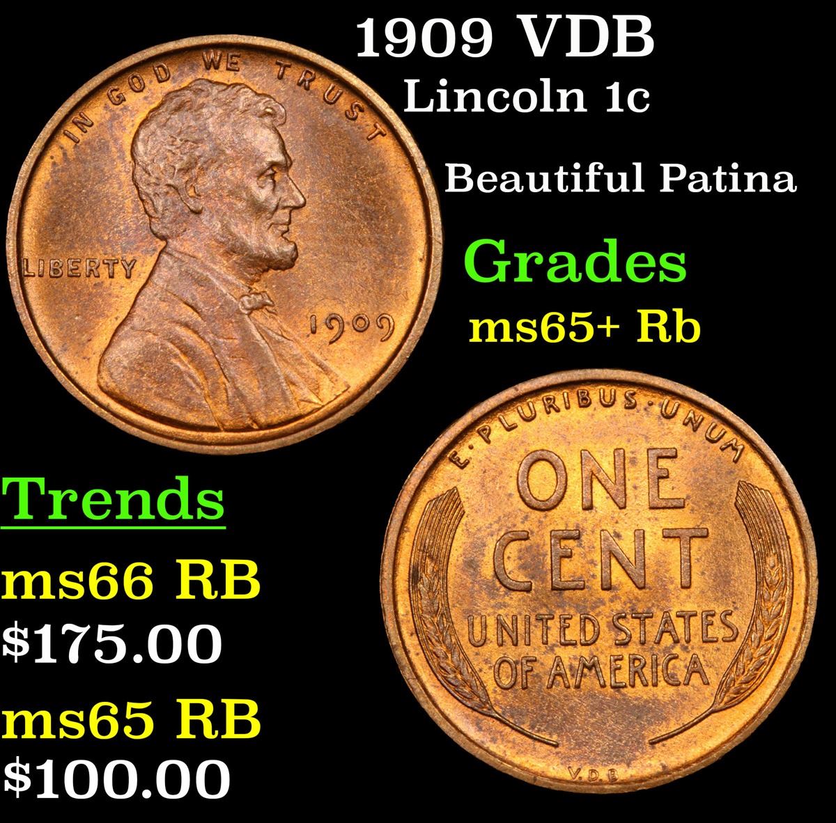 1909 VDB Lincoln Cent 1c Grades Gem+ Unc RB. Always sought after date. Always popular.