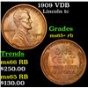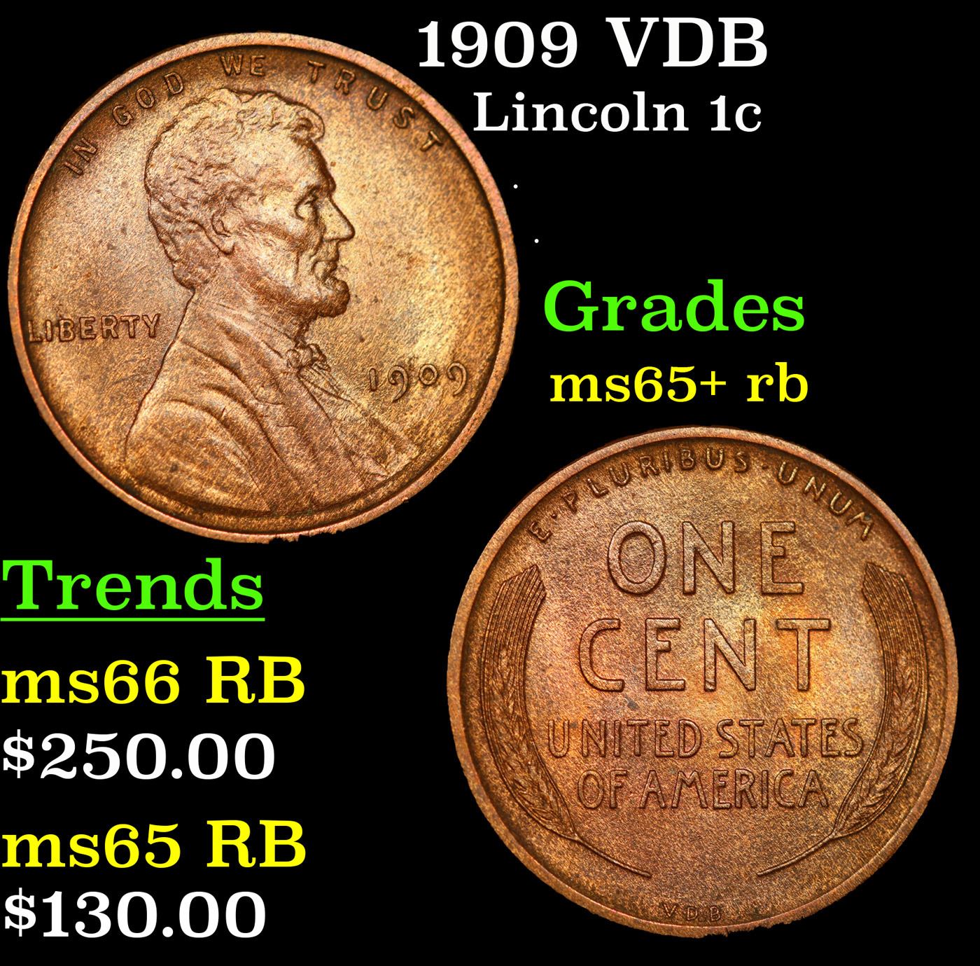 1909 VDB Lincoln Cent 1c Grades Gem+ Unc RB. Always sought after date. Always popular.