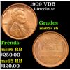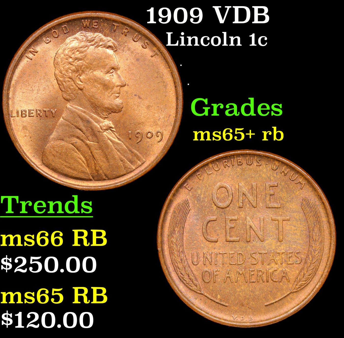 1909 VDB Lincoln Cent 1c Grades Gem+ Unc RB. Always sought after date. Always popular.