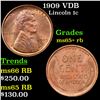 1909 VDB Lincoln Cent 1c Grades Gem+ Unc RB. Always sought after date. Always popular.
