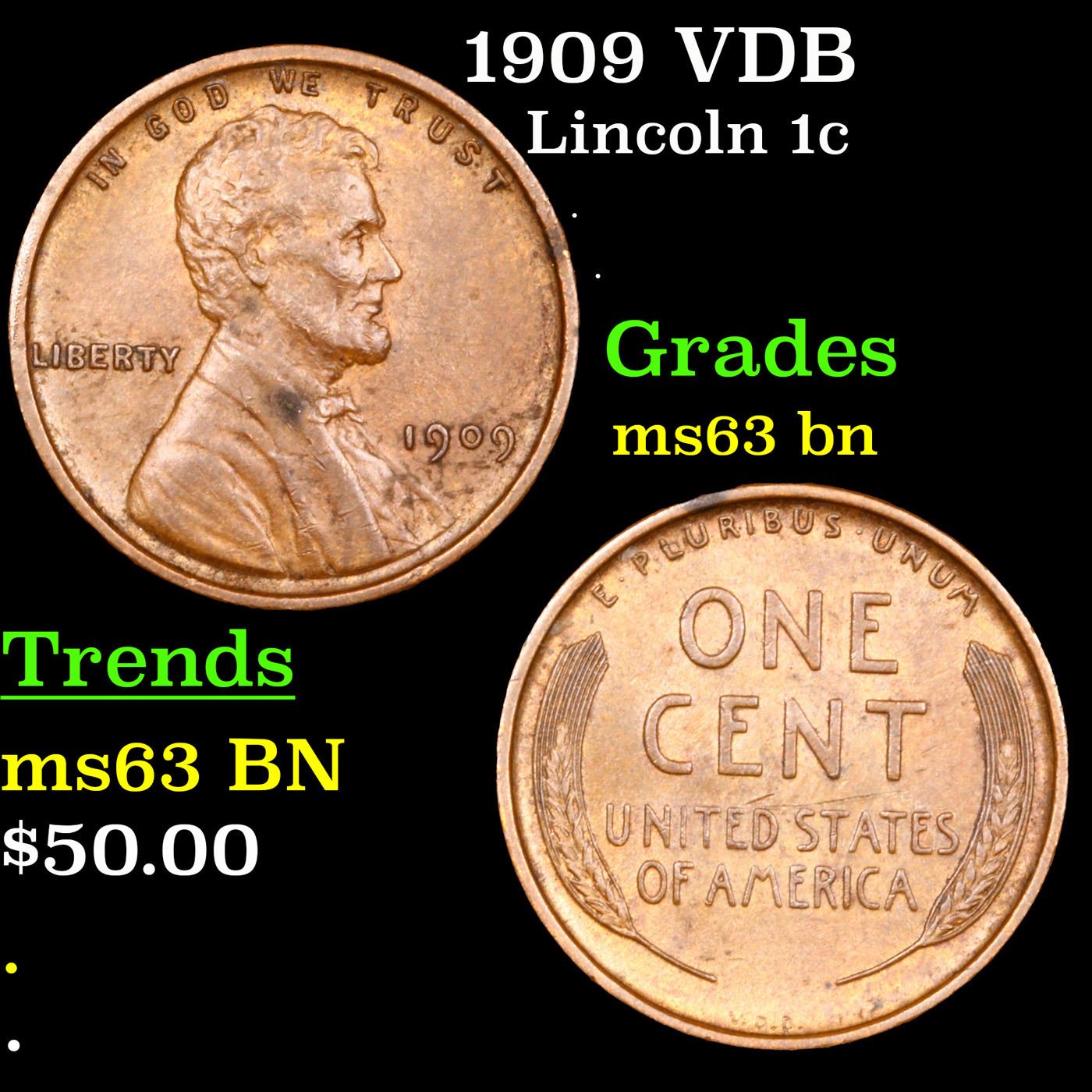 1909 VDB Lincoln Cent 1c Grades Select Unc BN. Always sought after date. Always popular.