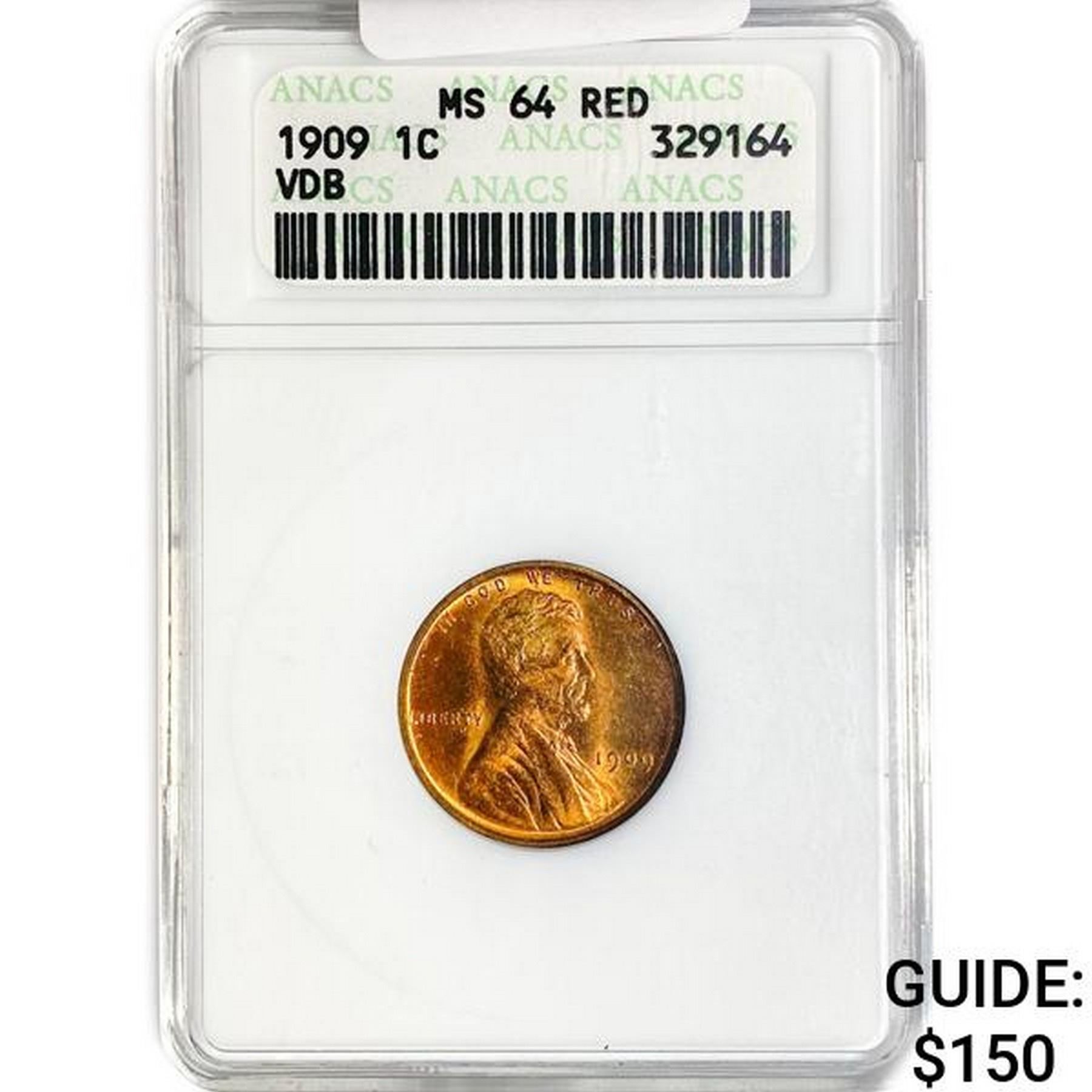 1909 VDB Lincoln Memorial Cent ANACS MS64 RED