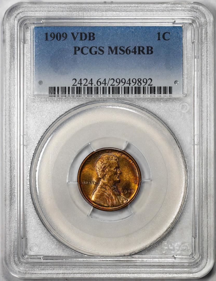 One 1909 VDB Lincoln Wheat Cent Coin PCGS MS64RB Amazing Reverse Color. PCGS Graded.