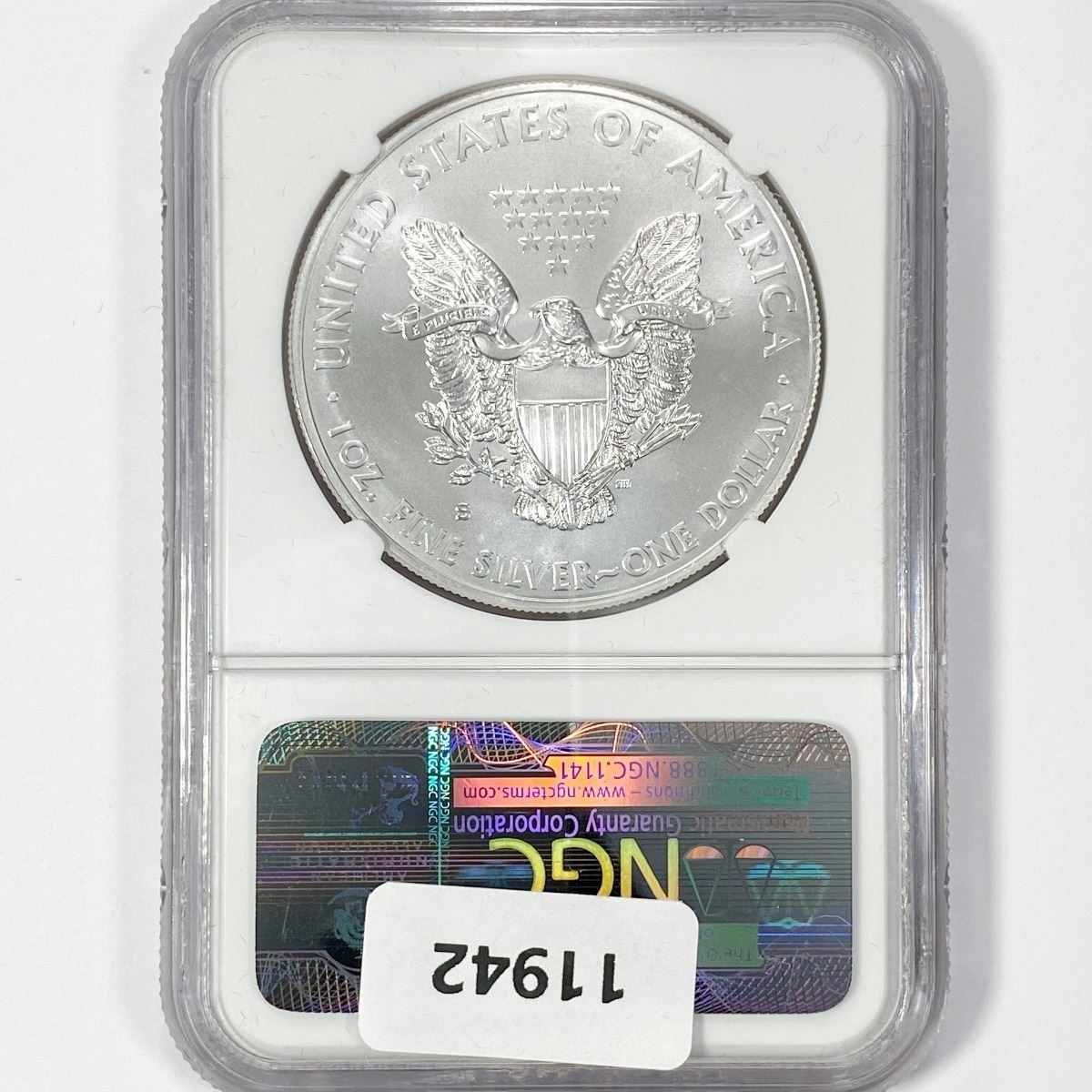 e . Coins sold referencing a third-party grading service are sold “AS IS'' without any express or implied warranty, except for a guarantee by GSA that they are genuine. Removal or alteration of the holder, voids all of Bidder’s claims concerning that Product. Certain warranties may be available from the grading services and Bidders are referred to them for further details: Numismatic Guaranty Corporation (NGC), PO Box 4776, Sarasota, FL 34230, www.ngccoin.com /services/writtenguarantee.asp; Professional Coin Grading Services (PCGS), PO Box 9458, Newport Beach, CA 92658, www.pcgs.com /guarantee.htm l; ANACS, 6555 S. Kenton St., Ste. 303, Englewood, CO 80111; and Independent Coin Grading Co. (ICG), 7901 East Bellview, Ave., Suite 50, Englewood, CO 80111.