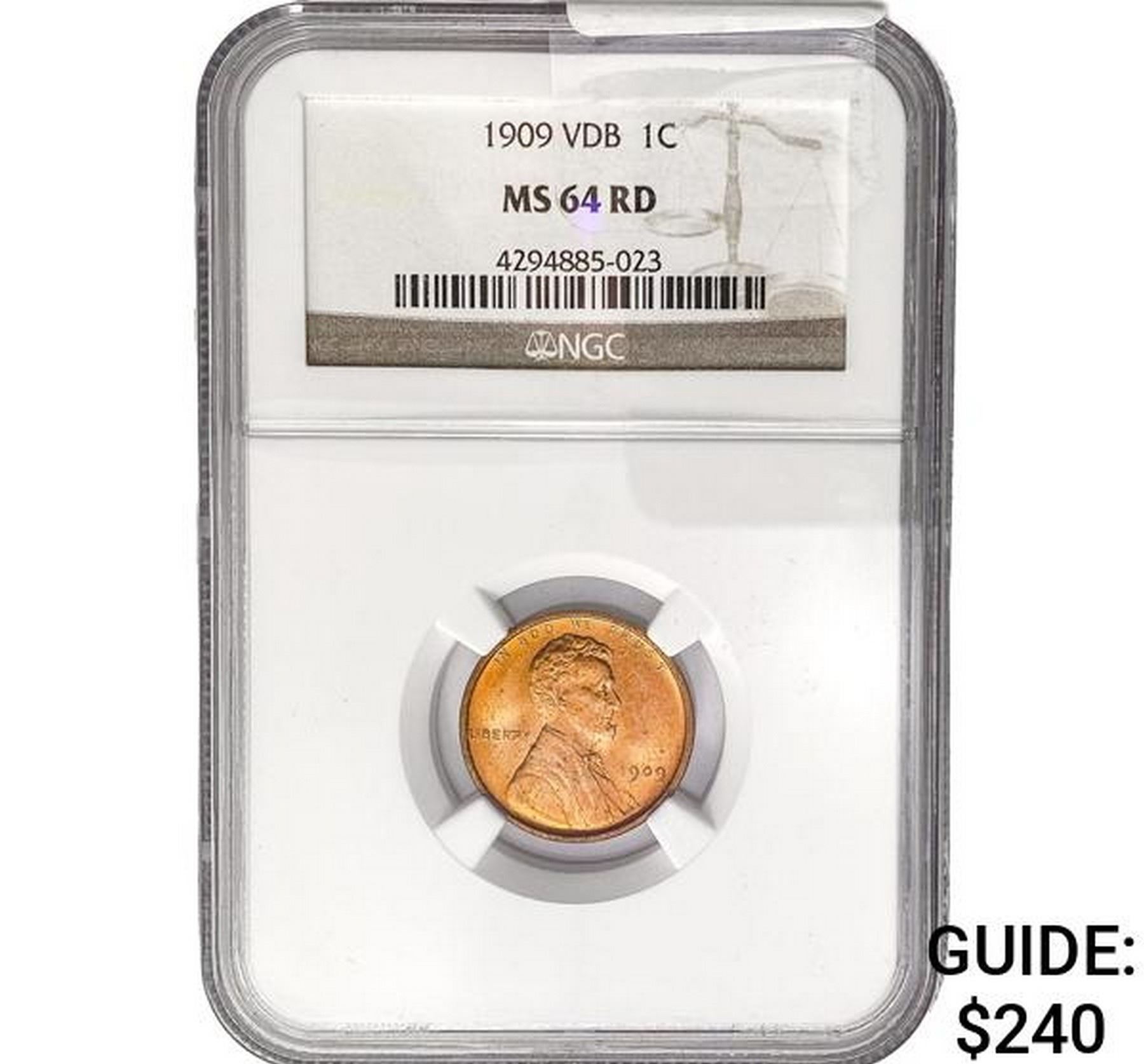 1909 VDB Wheat Cent NGC MS64 RD