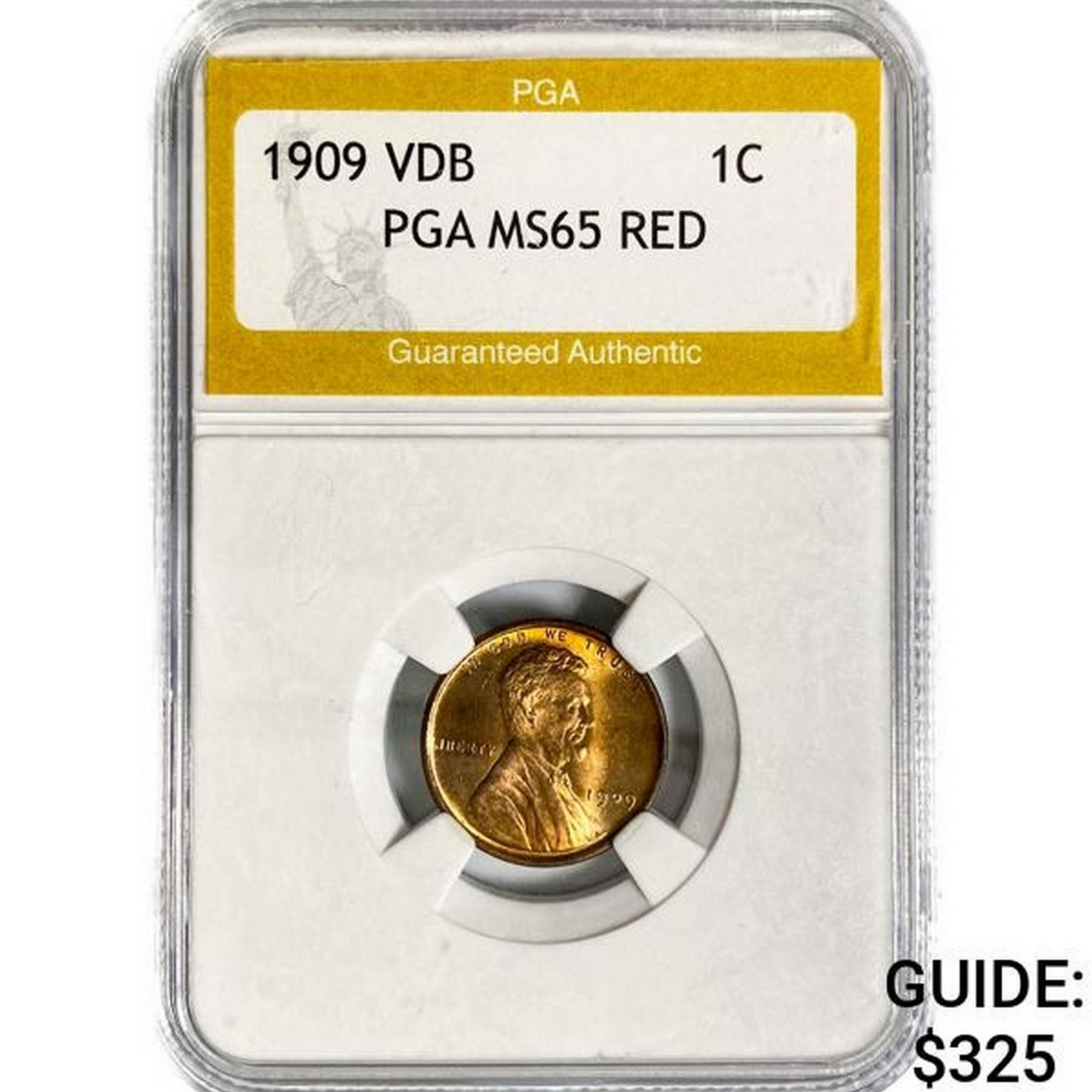 1909 VDB Wheat Cent PGA MS65 RED