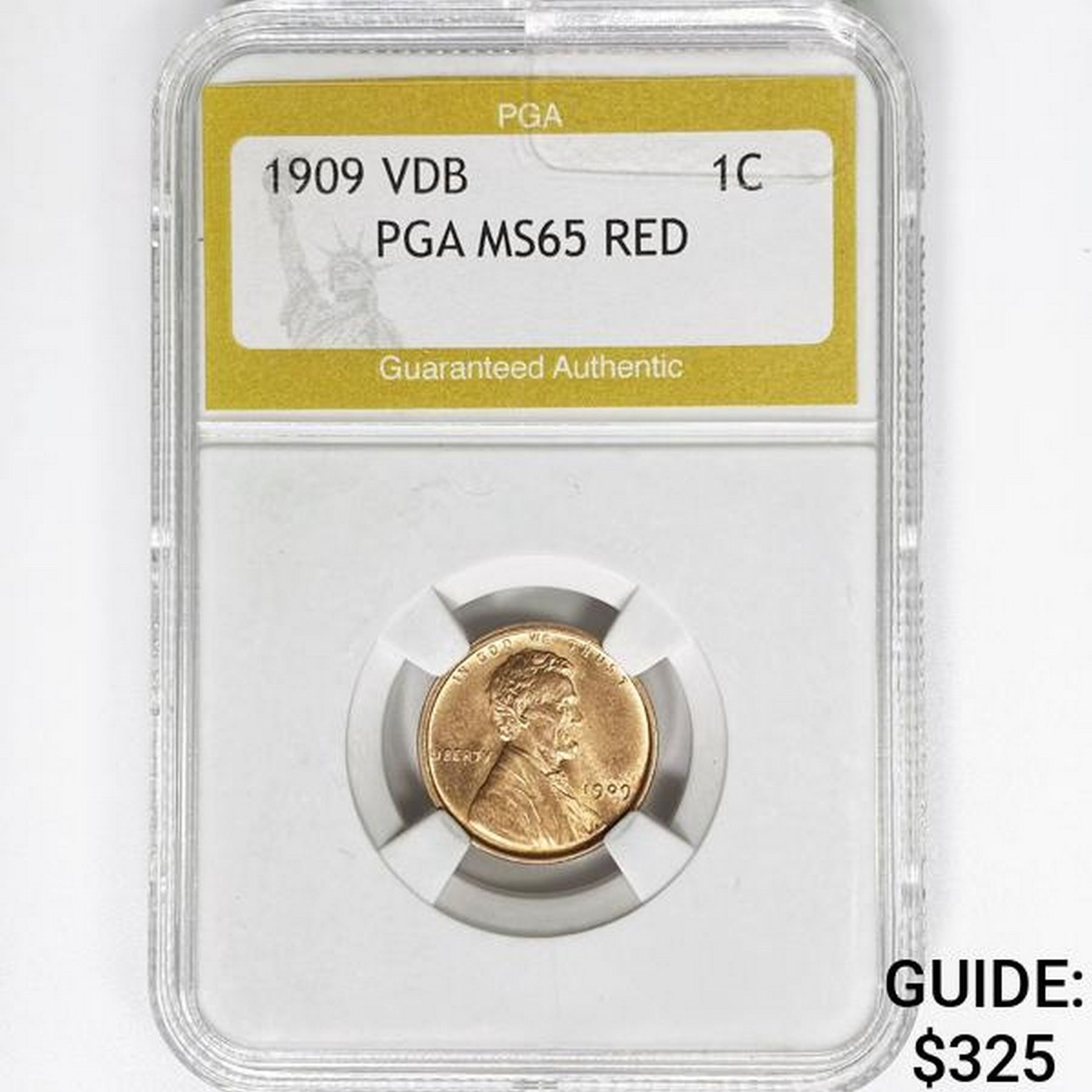 1909 VDB Wheat Cent PGA MS65 RED