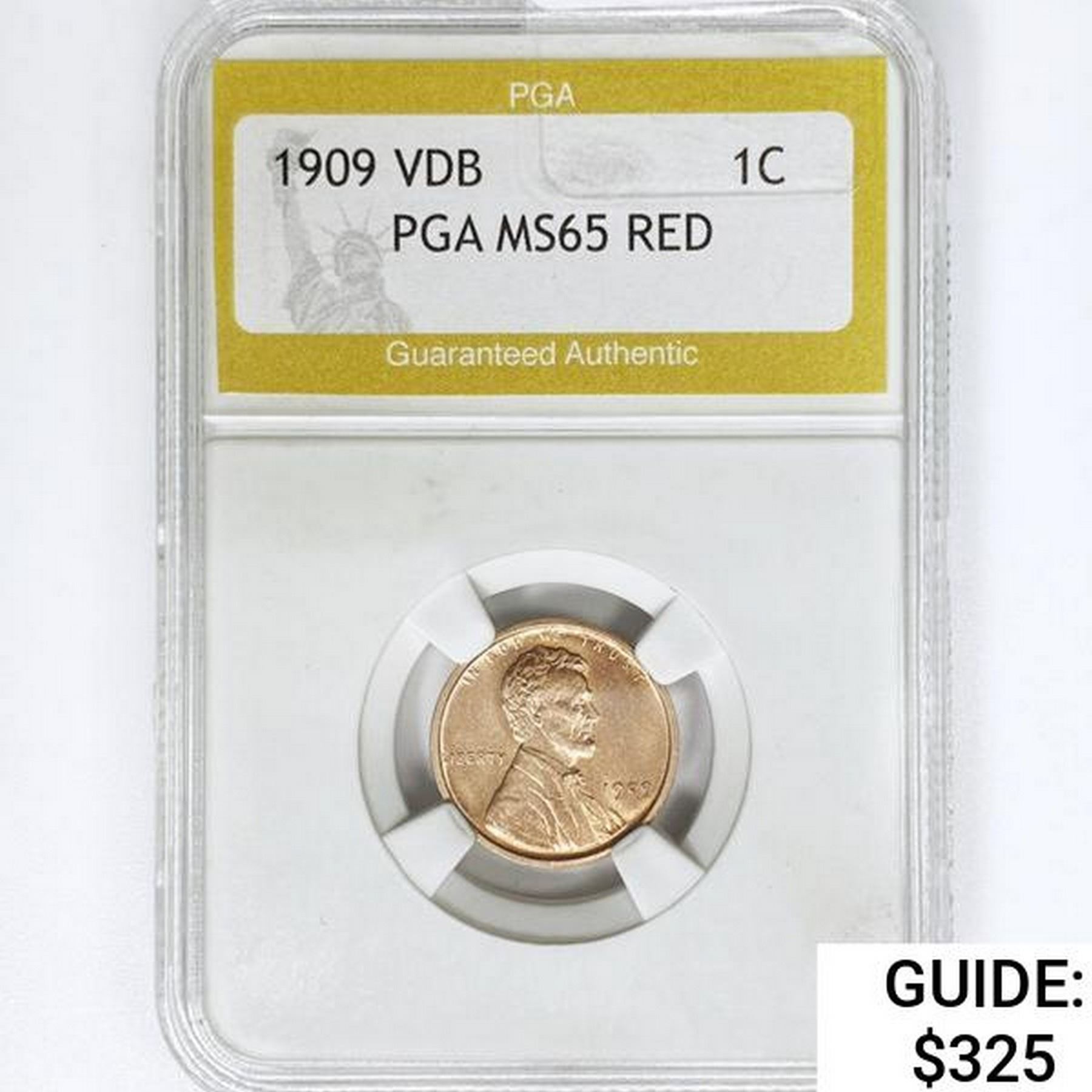 1909 VDB Wheat Cent PGA MS65 RED