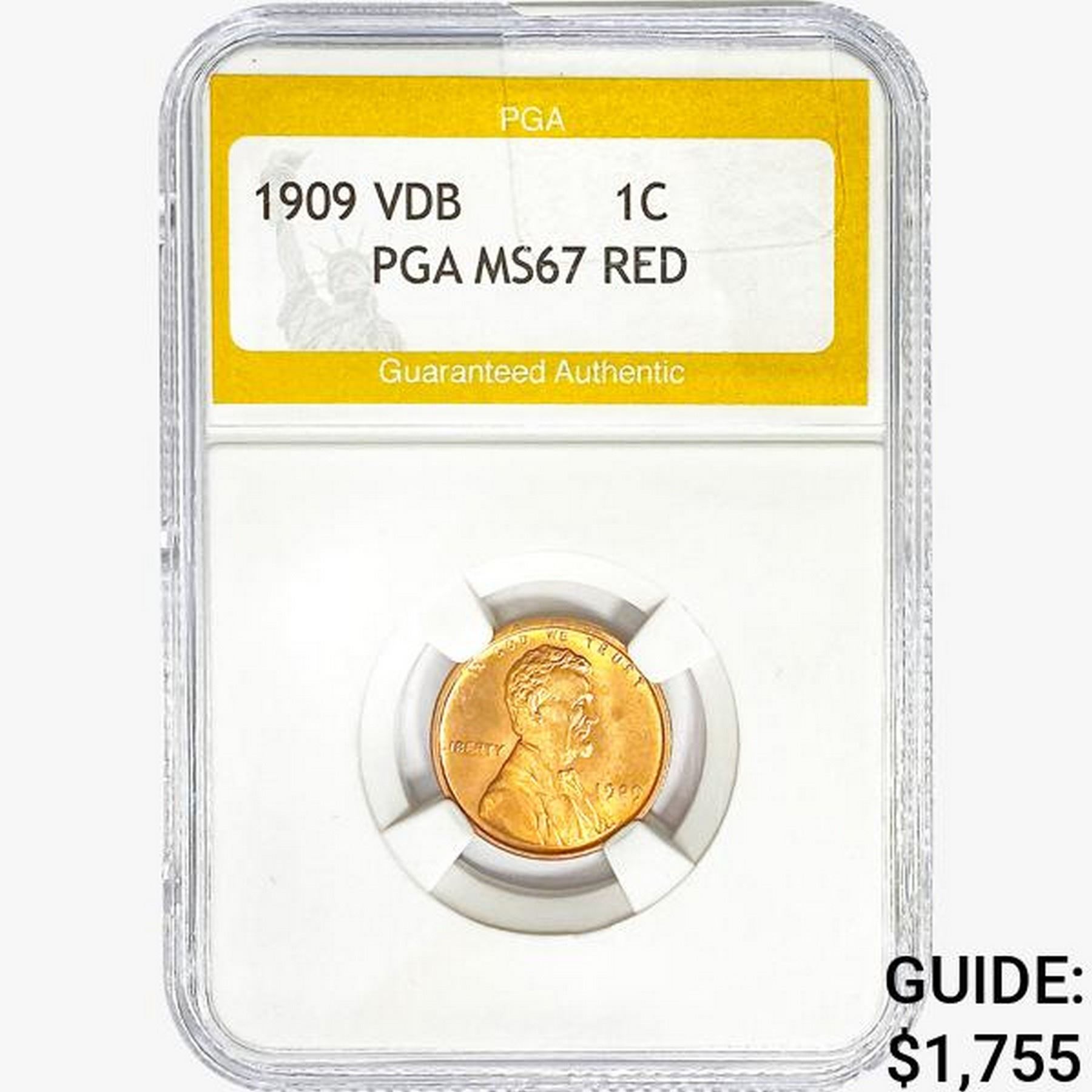 1909 VDB Wheat Cent PGA MS67 RED