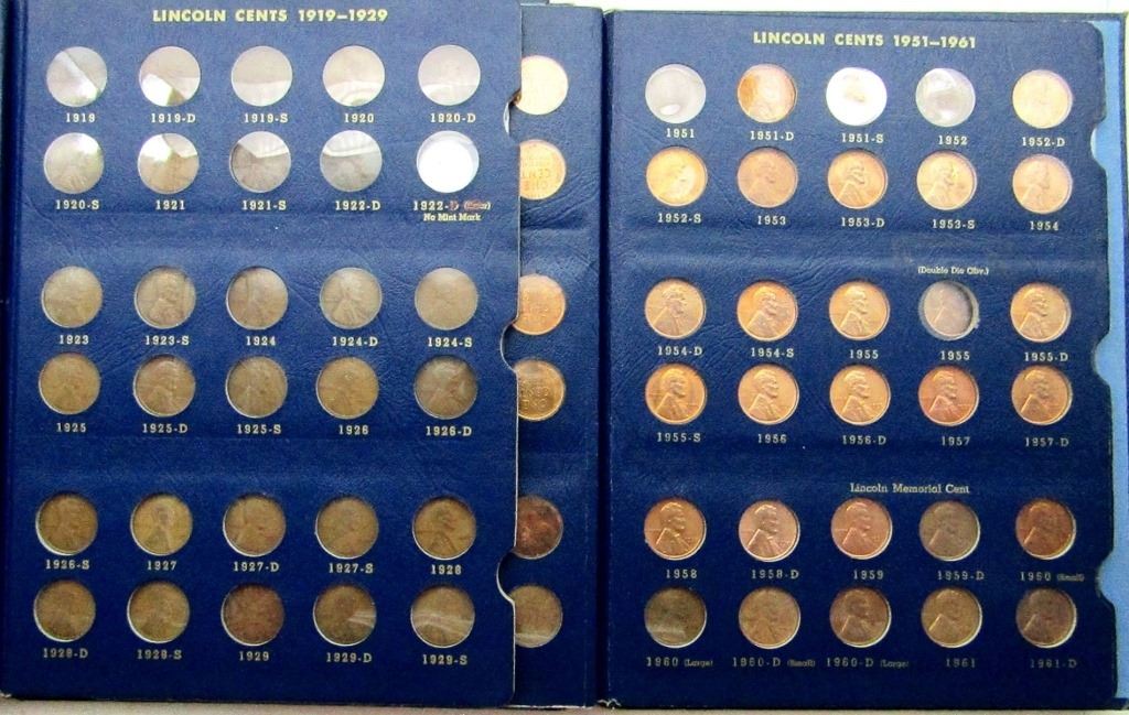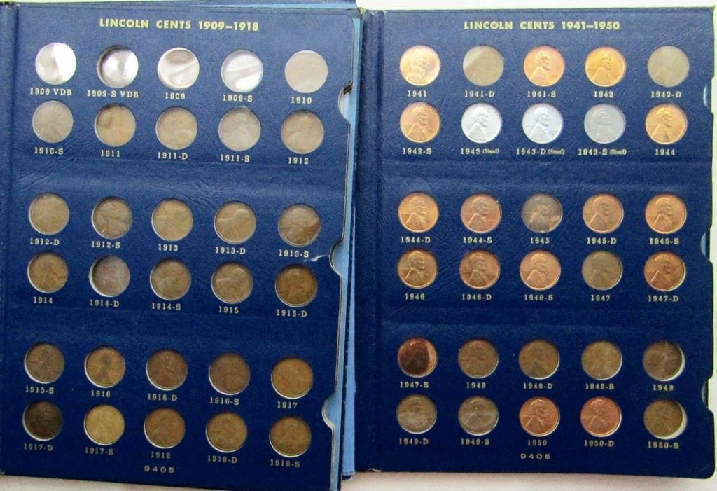 ONLY MISSING 5 COINS (1909-S VDB, 1909-S, 1914-D, 1922-D No Mint Mark Error, 1955) in 2 WHITMAN ALBUMS, CIRC to UNC ( 175 TOTAL )
