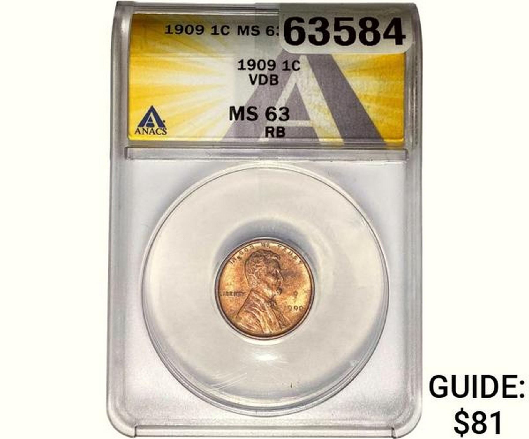1909 Wheat Cent ANACS MS63 RB VDB