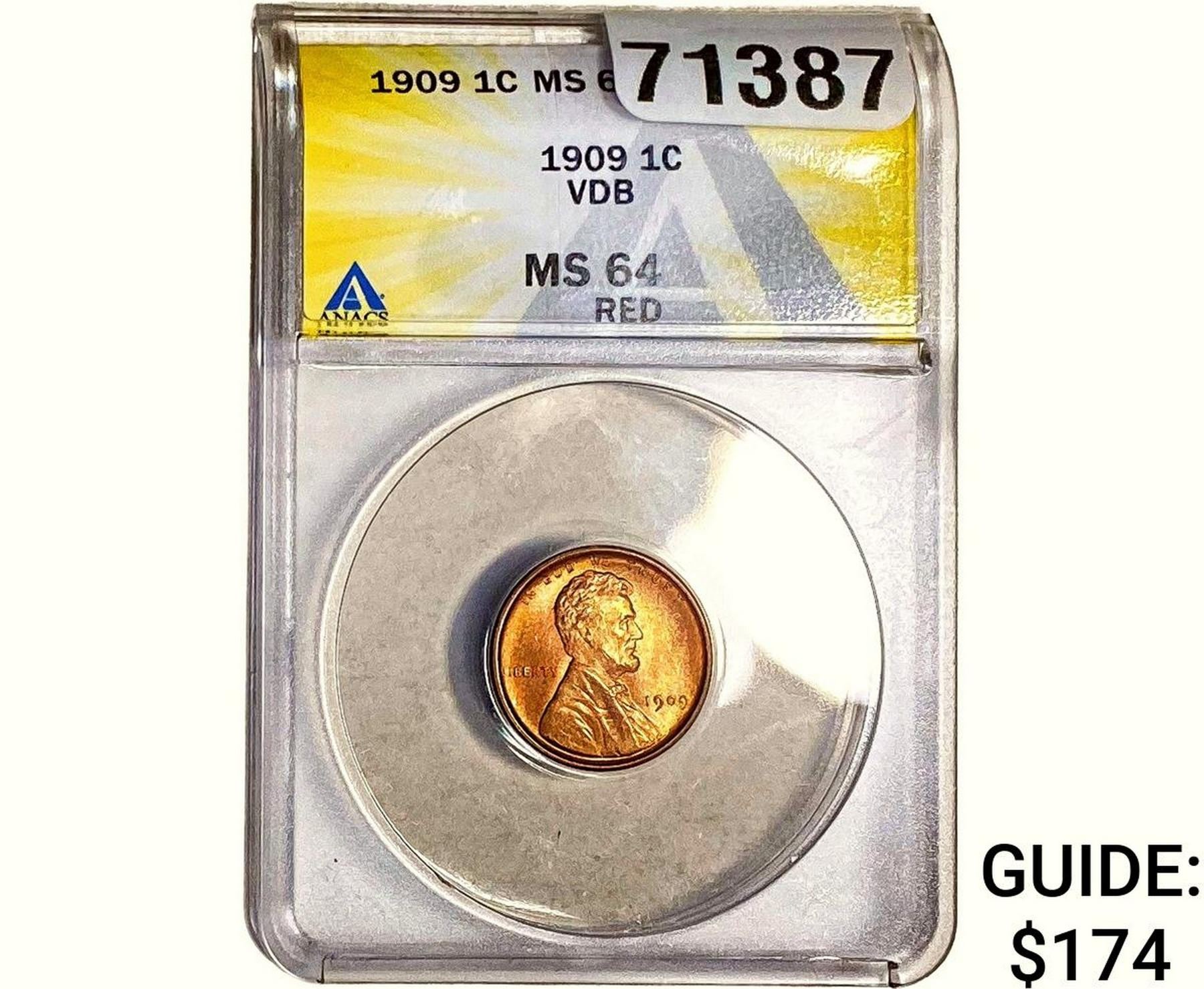 1909 Wheat Cent ANACS MS64 Red