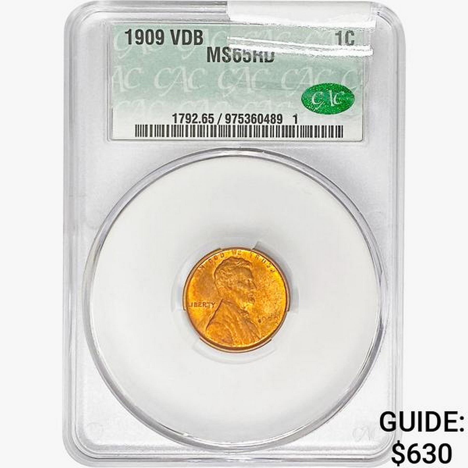 1909 Wheat Cent CAC MS65 RD