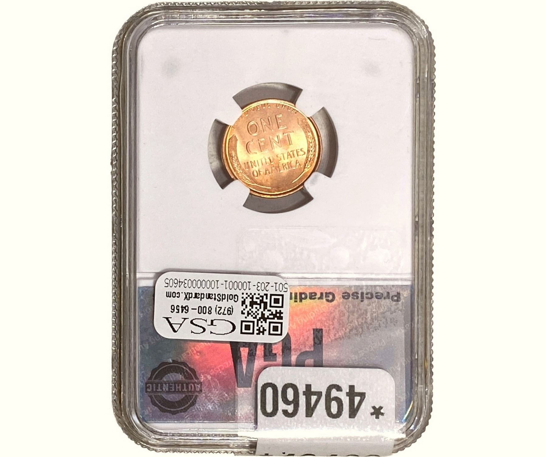 COINS AND CURRENCY LISTED IN GSA’S CATALOG AS GRADED AND ENCAPSULATED BY PCGS, NGC, ANACS, ICG, PCGS CURRENCY, PMG, PCGS BANKNOTE GRADING, CMC OR ANY OTHER THIRD-PARTY GRADING SERVICE ARE LIKEWISE SOLD “AS-IS” EXCEPT AS EXPRESSLY SET FORTH HEREIN. ALL THIRD-PARTY GRADING SERVICE GUARANTEES, INCLUDING AUTHENTICITY, ARE THE SOLE RESPONSIBILITY OF THE THIRD-PARTY GRADING SERVICE AND NOT WARRANTIES OR GUARANTEES OF GSA. BIDDERS SHOULD CONTACT THESE THIRD-PARTY GRADING SERVICES DIRECTLY WITH RESPECT TO ANY CLAIMS OR QUESTIONS THEY MAY HAVE CONCERNING THEIR GUARANTEES AND WARRANTIES. BIDDERS ACKNOWLEDGE AND AGREE THAT AUCTIONEER IS NOT BOUND BY OR LIABLE FOR ANY OPINION OR CERTIFICATION BY ANY THIRD-PARTY GRADING SERVICE. REMOVAL OF A PRODUCT FROM ITS PROTECTIVE CASING OR HOLDER OR ALTERATION OF ANY COIN HOLDER WAIVES ALL RIGHTS CONCERNING THE PRODUCT CONTAINED THEREIN.