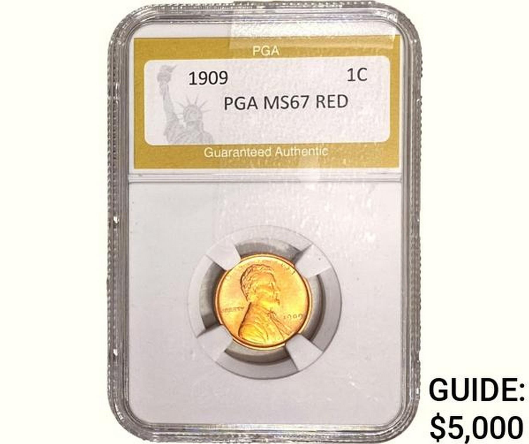 COINS AND CURRENCY LISTED IN GSA’S CATALOG AS GRADED AND ENCAPSULATED BY PCGS, NGC, ANACS, ICG, PCGS CURRENCY, PMG, PCGS BANKNOTE GRADING, CMC OR ANY OTHER THIRD-PARTY GRADING SERVICE ARE LIKEWISE SOLD “AS-IS” EXCEPT AS EXPRESSLY SET FORTH HEREIN. ALL THIRD-PARTY GRADING SERVICE GUARANTEES, INCLUDING AUTHENTICITY, ARE THE SOLE RESPONSIBILITY OF THE THIRD-PARTY GRADING SERVICE AND NOT WARRANTIES OR GUARANTEES OF GSA. BIDDERS SHOULD CONTACT THESE THIRD-PARTY GRADING SERVICES DIRECTLY WITH RESPECT TO ANY CLAIMS OR QUESTIONS THEY MAY HAVE CONCERNING THEIR GUARANTEES AND WARRANTIES. BIDDERS ACKNOWLEDGE AND AGREE THAT AUCTIONEER IS NOT BOUND BY OR LIABLE FOR ANY OPINION OR CERTIFICATION BY ANY THIRD-PARTY GRADING SERVICE. REMOVAL OF A PRODUCT FROM ITS PROTECTIVE CASING OR HOLDER OR ALTERATION OF ANY COIN HOLDER WAIVES ALL RIGHTS CONCERNING THE PRODUCT CONTAINED THEREIN.