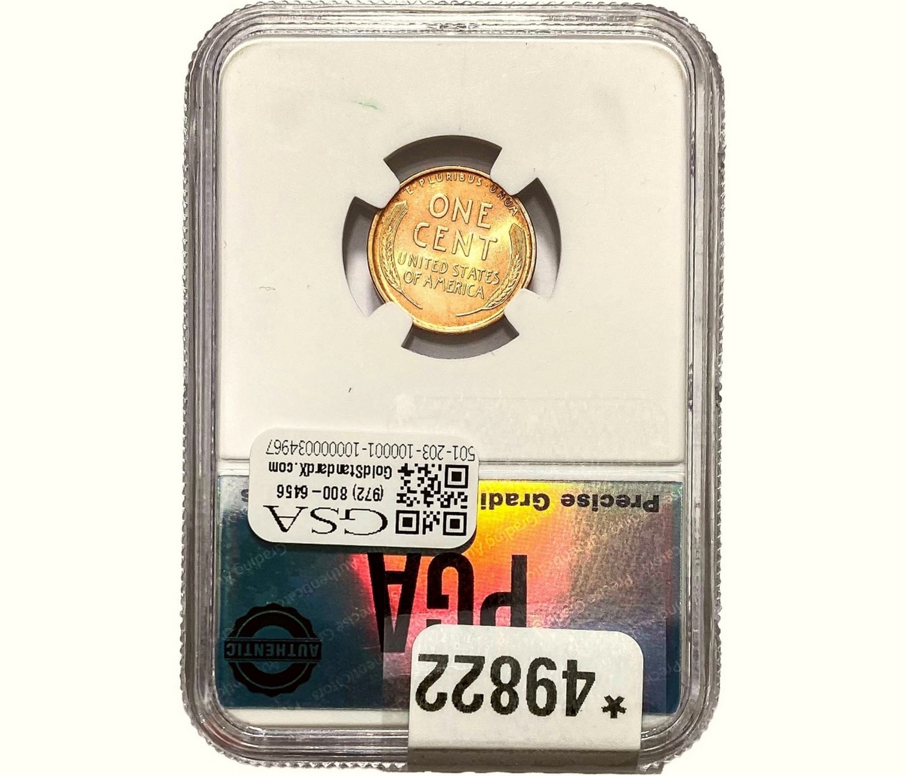 l. All non-certified coins and currency are guaranteed genuine, but are not guaranteed as to grade, since grading is a matter of opinion, an art and not a science, and therefore the description rendered by GSA or any third-party grading service may not agree with the opinion of others (including trained experts), and the same expert may not grade the same item with the same grade at two different times. GSA may, but is not obligated to, express an opinion as to non-certified numismatic items, in GSA’s opinion, or by its employees’ experience and the current interpretation of the American Numismatic Association’s standards as of the date the catalog was prepared. There is no guarantee or warranty expressed or implied that the grading opinions utilized by GSA, if any, will meet the standards of any grading service at any time in the future.