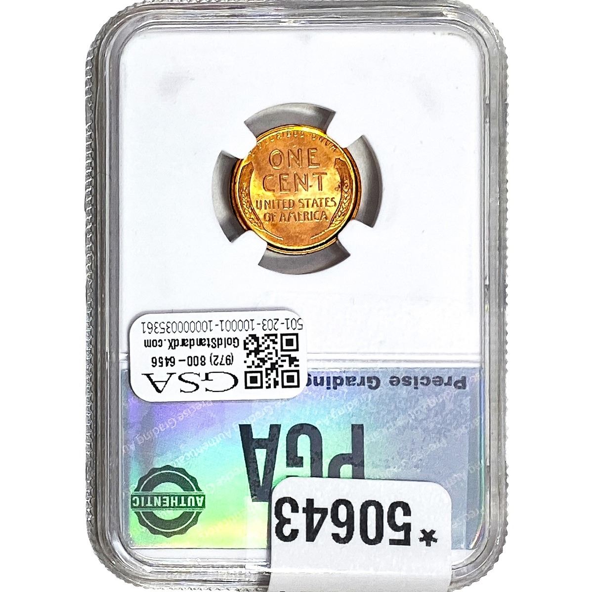 e. Coins sold referencing a third-party grading service are sold “AS IS” without any express or implied warranty, except for a guarantee by GSA that they are genuine. Removal or alteration of the holder, voids all of Bidder’s claims concerning that Product. Certain warranties may be available from the grading services and Bidders are referred to them for further details: Numismatic Guaranty Corporation (NGC), PO Box 4776, Sarasota, FL 34230, www.ngccoin.com/services/writtenguarantee.asp; Professional Coin Grading Services (PCGS), PO Box 9458, Newport Beach, CA 92658, www.pcgs.com/guarantee.html; ANACS, 6555 S. Kenton St., Ste. 303, Englewood, CO 80111; and Independent Coin Grading Co. (ICG), 7901 East Bellview, Ave., Suite 50, Englewood, CO 80111.