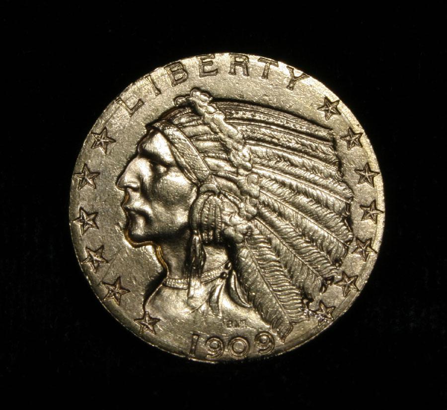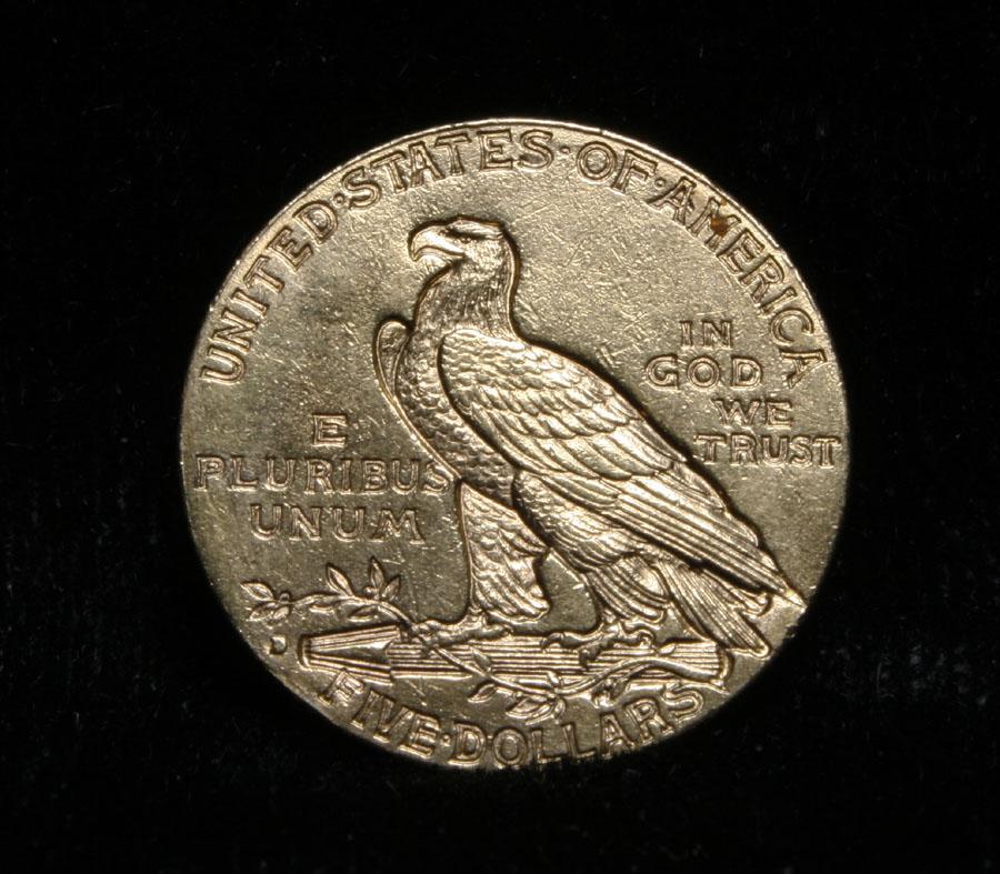 Nice Well Struck example. The Incuse design of the $5 Indian initially spurred great uproar and many people claimed that the incuse design would trap dirt and spread disease. This is s nice example of this great coin. Coin World's Coin Values lists ms63 at $2250 and The Wholesale Greysheet lists ms63 at $1585. Estimated Value $1750