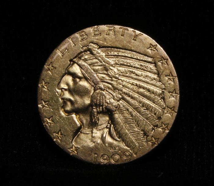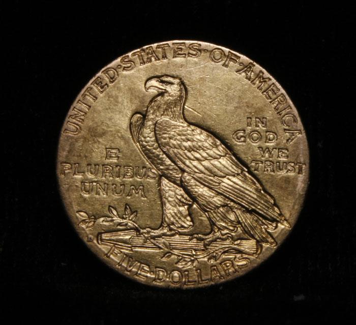 Nice Well Struck example. The Incuse design of the $5 Indian initially spurred great uproar and many people claimed that the incuse design would trap dirt and spread disease. This is s nice example of this great coin. Coin World's Coin Values lists ms63 at $2250 and The Wholesale Greysheet lists ms63 at $1585. Estimated Value $1750