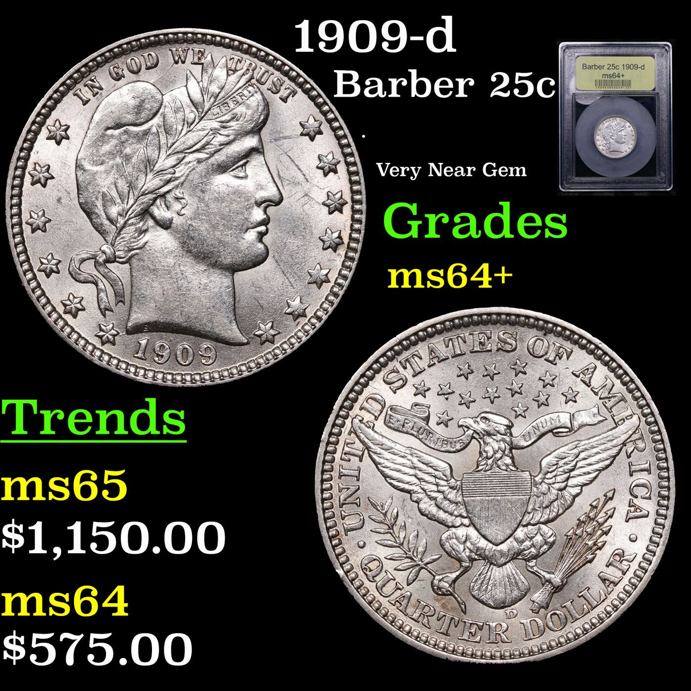 1909-d Barber Quarter 25c Graded Choice+ Unc By USCG. A Corey's Pick, Bid to Win Coin