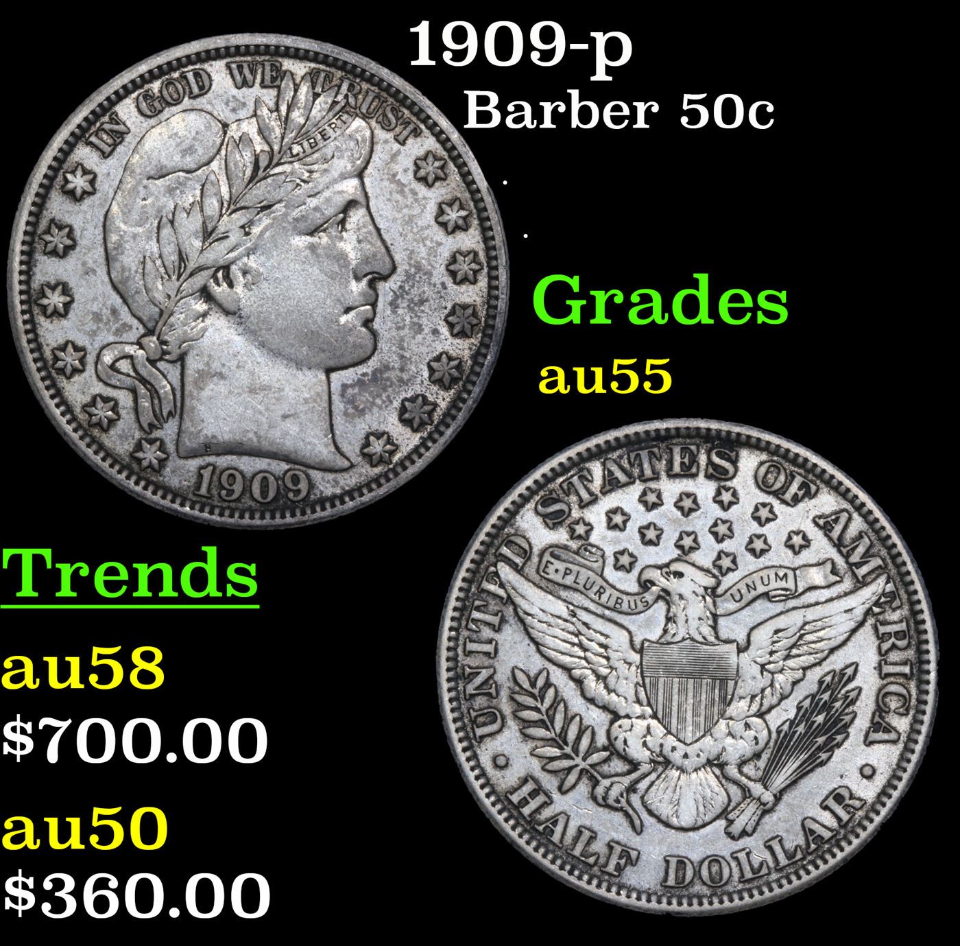 1909-p Barber Half Dollars 50c Grades Choice AU.