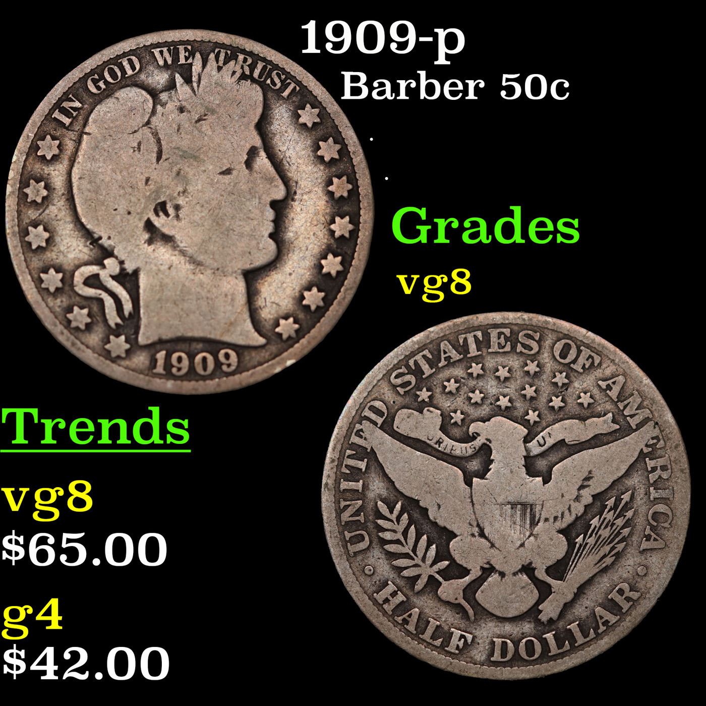 1909-p Barber Half Dollars 50c Grades vg, very good