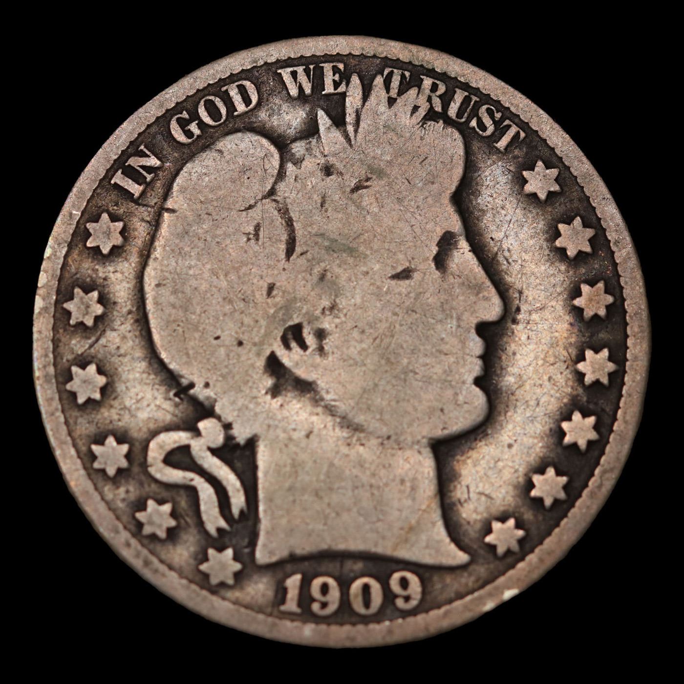 1909-p Barber Half Dollars 50c Grades vg, very good.