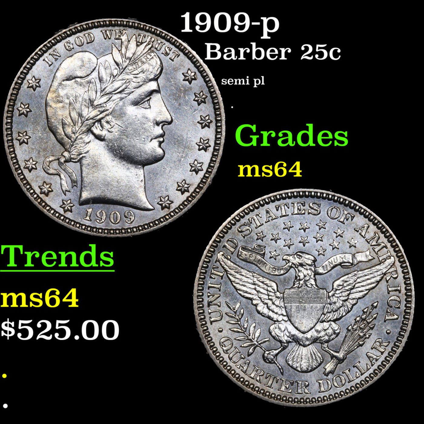1909-p Barber Quarter 25c Grades Choice Unc.