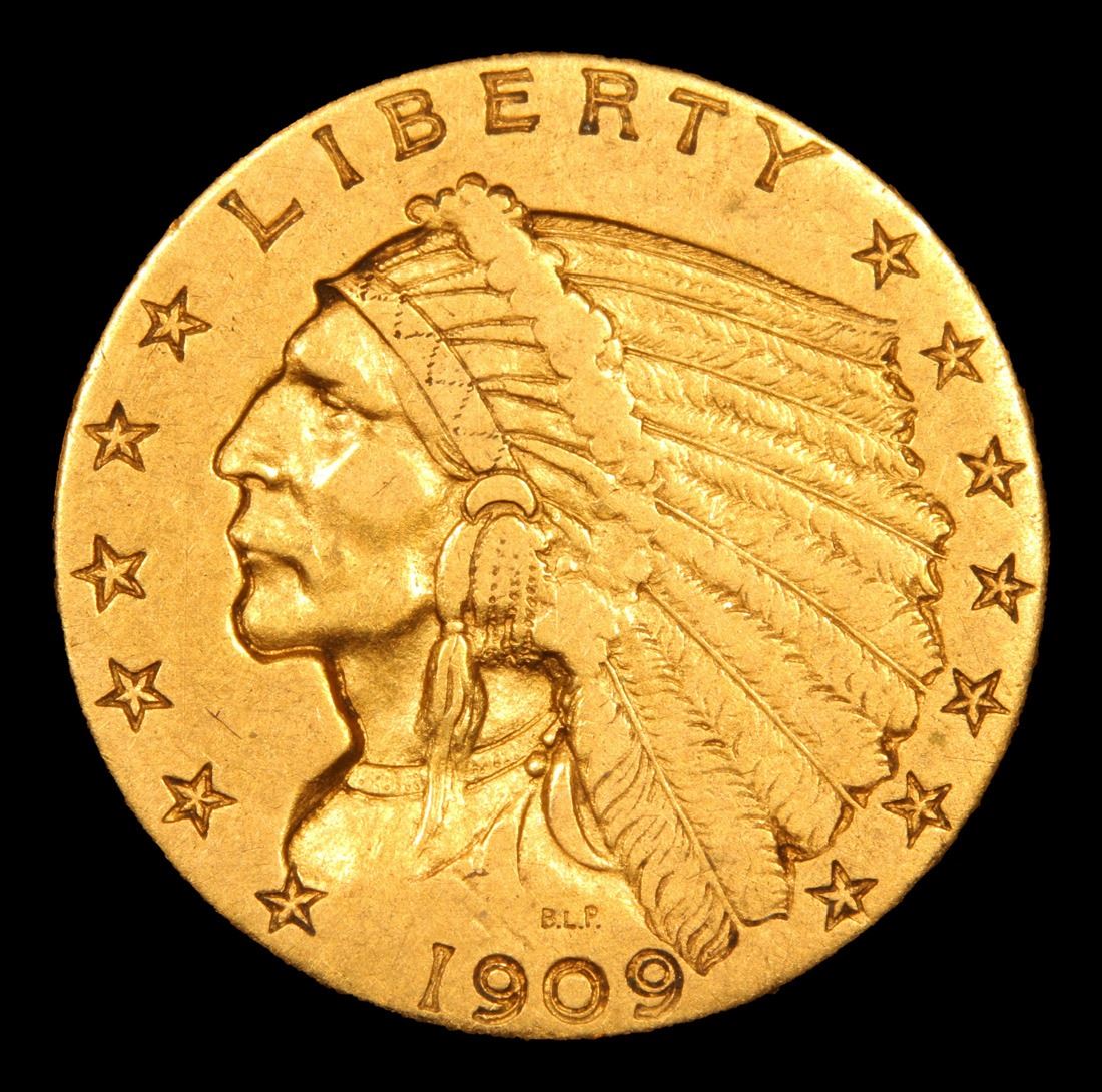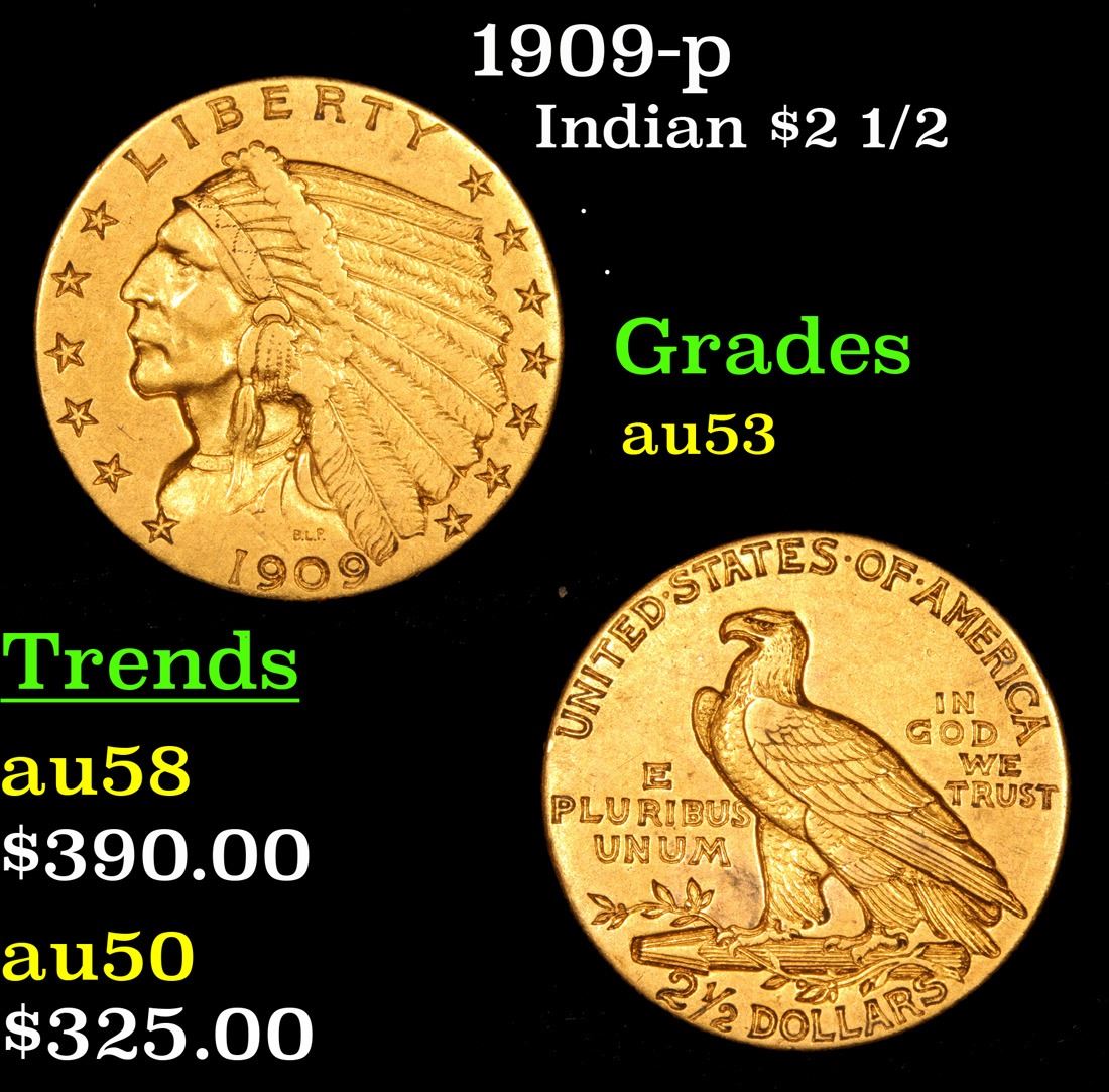1909-p . . Gold Indian Quarter Eagle $2 1/2 Grades Select AU.