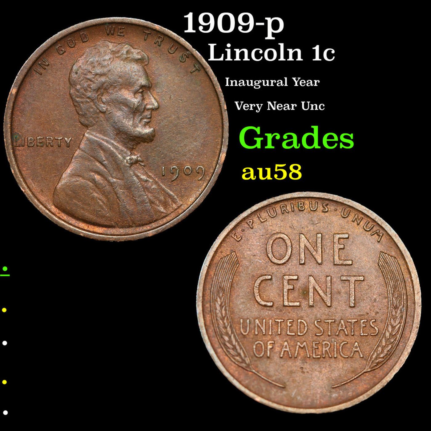1909-p Lincoln Cent 1c Grades Choice AU/BU Slider.
