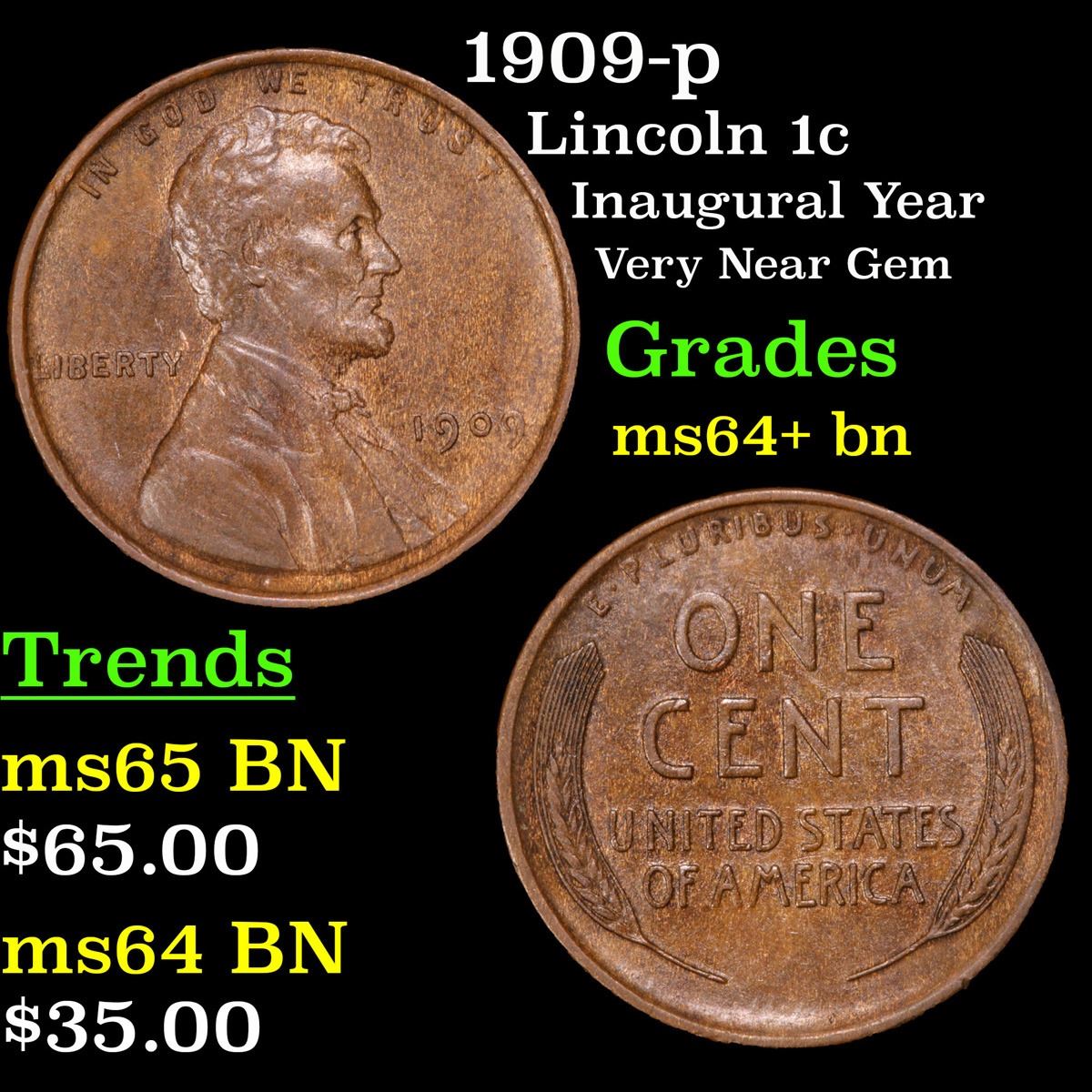 1909-p Inaugural Year Very Near Gem Lincoln Cent 1c Grades Choice+ Unc BN.