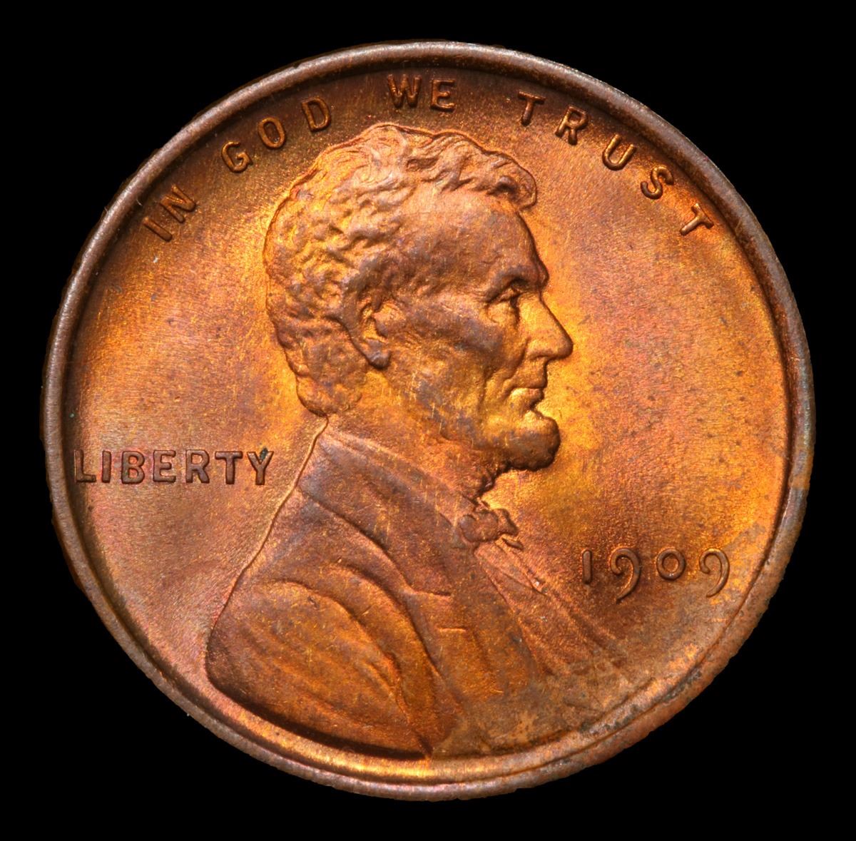 1909-p Inaugural Year Very Strong Luster; Beautiful Patina Lincoln Cent 1c Grades Choice+ Unc RB.