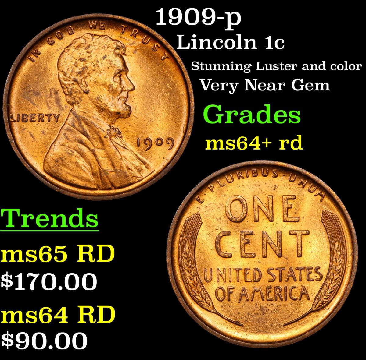 1909-p Stunning Luster and color Very Near Gem Lincoln Cent 1c Grades Choice+ Unc RD.