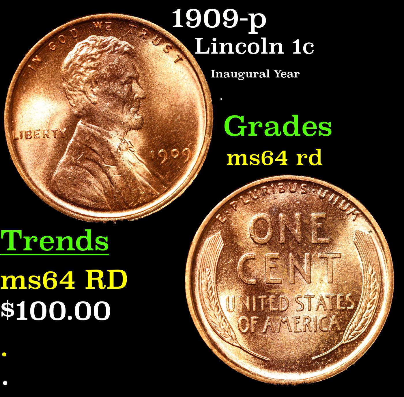 1909-p Lincoln Cent 1c Grades Choice Unc.