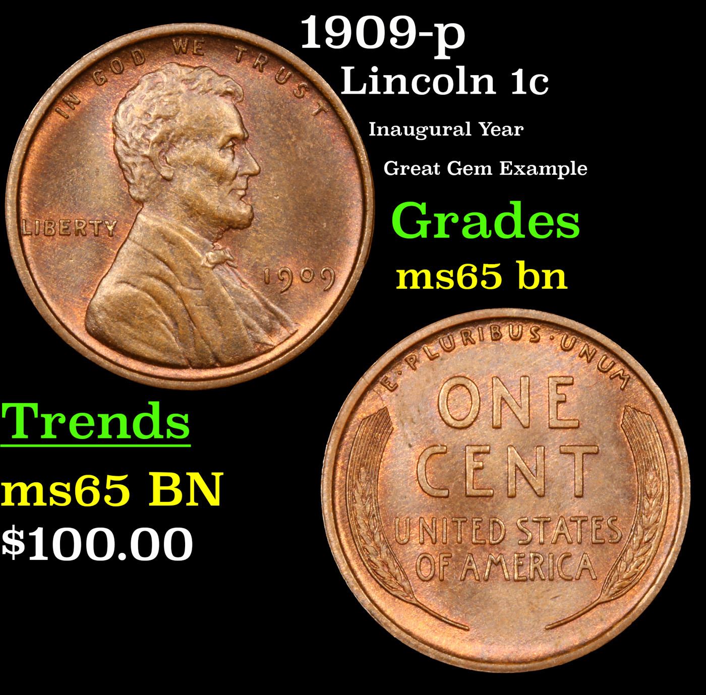 1909-p Lincoln Cent 1c Grades GEM Unc BN.