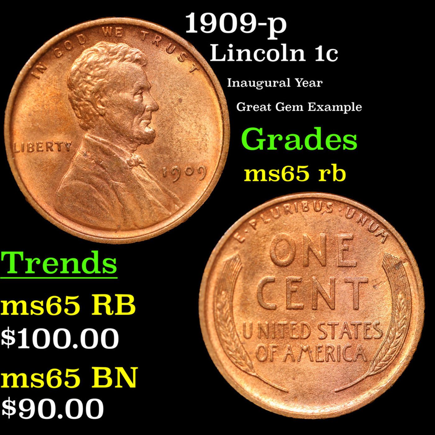 1909-p Lincoln Cent 1c Grades GEM Unc RB.