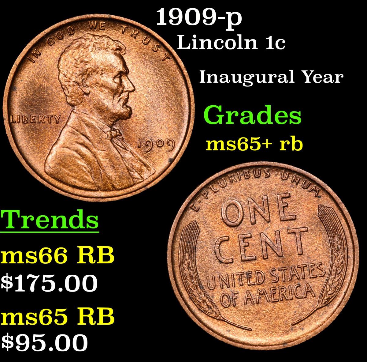 1909-p Inaugural Year . Lincoln Cent 1c Grades Gem+ Unc RB.