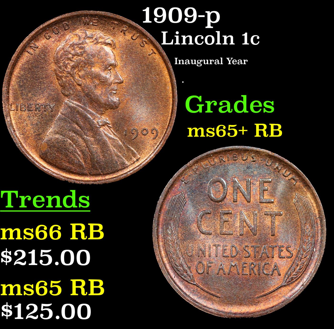 1909-p Lincoln Cent 1c Grades Gem+ Unc RB.