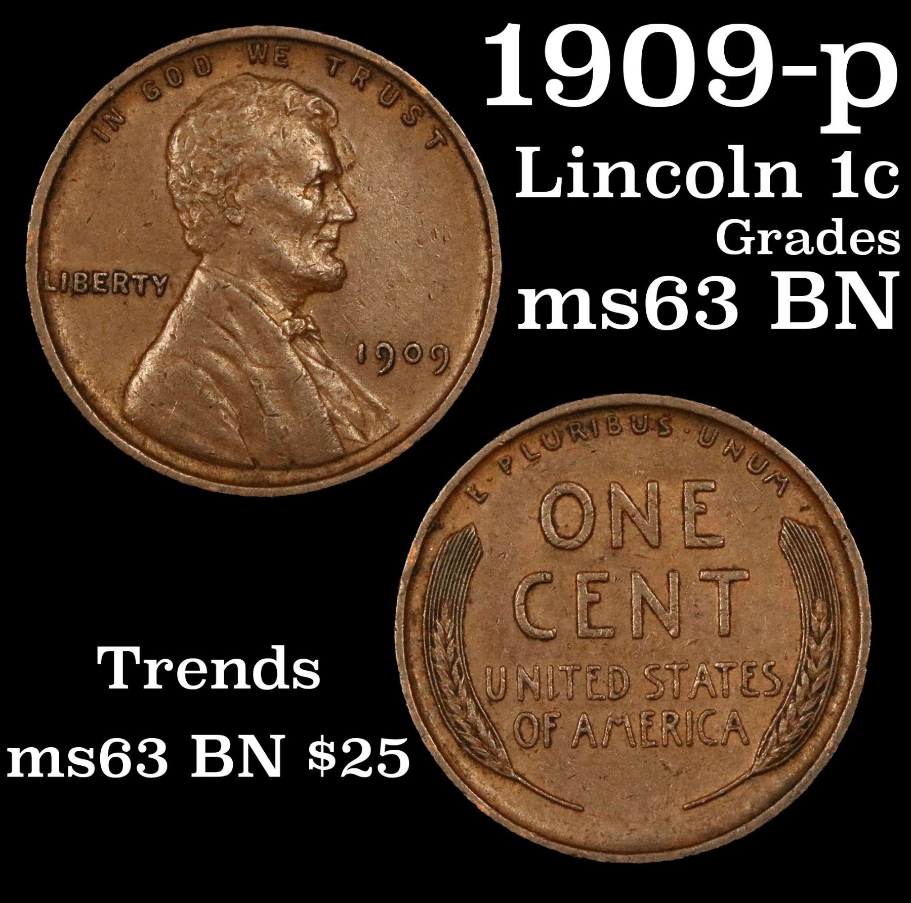 1909-p Lincoln Cent 1c Grades Select Unc BN.