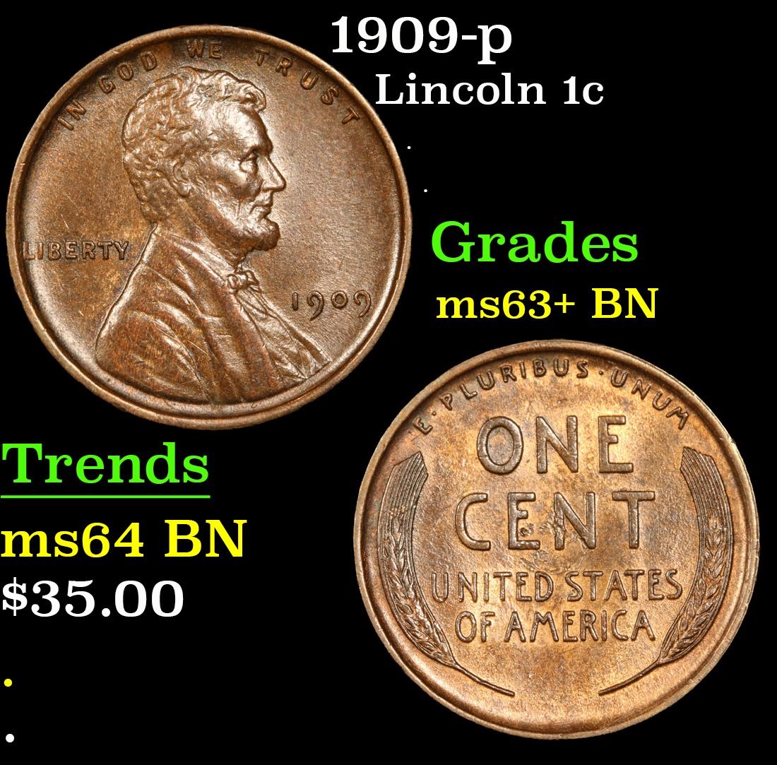 1909-p Lincoln Cent 1c Grades Select+ Unc BN.