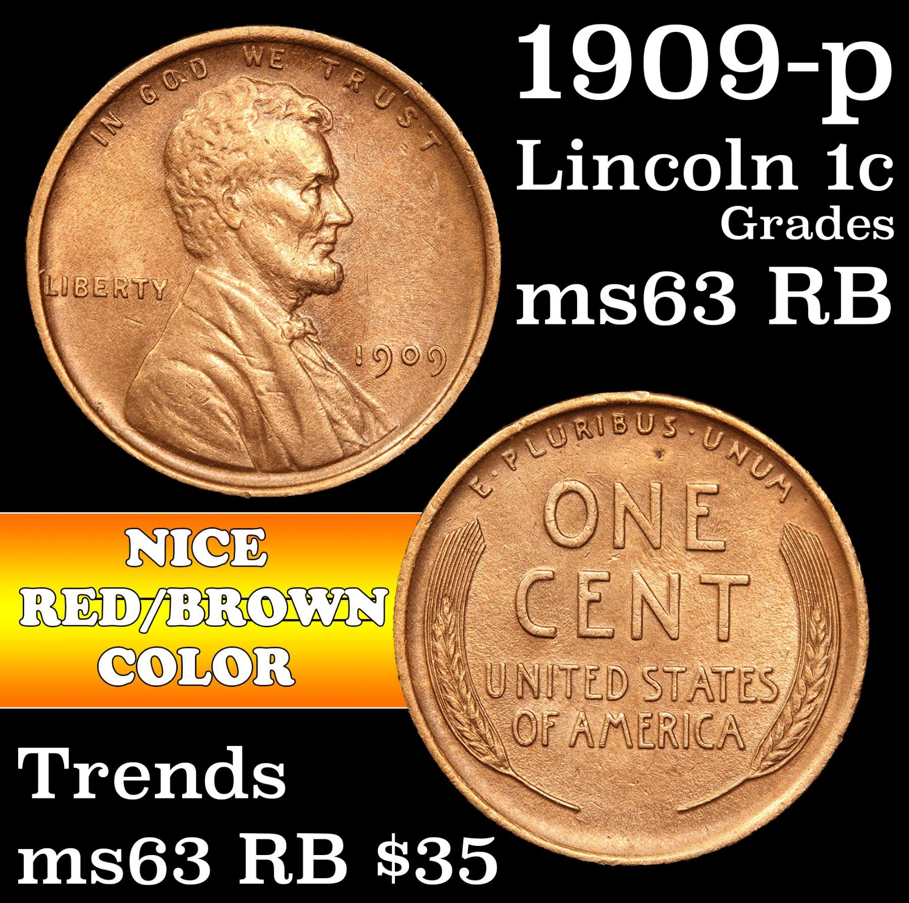 1909-p Lincoln Cent 1c Grades Select Unc RB.