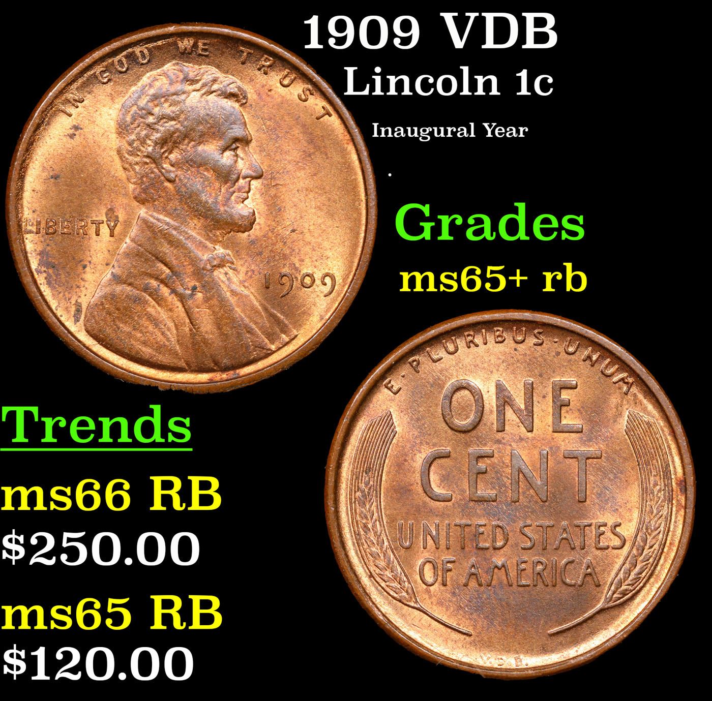 1909-p VDB Lincoln Cent 1c Grades Gem+ Unc RB