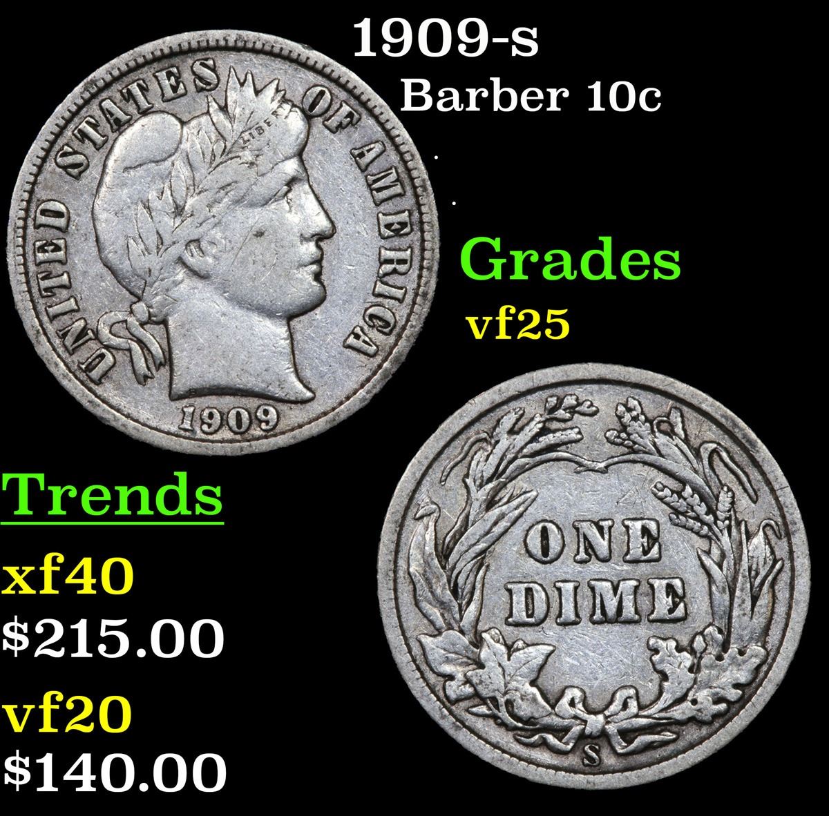1909-s . . Barber Dime 10c Grades vf+. A much better date!!
