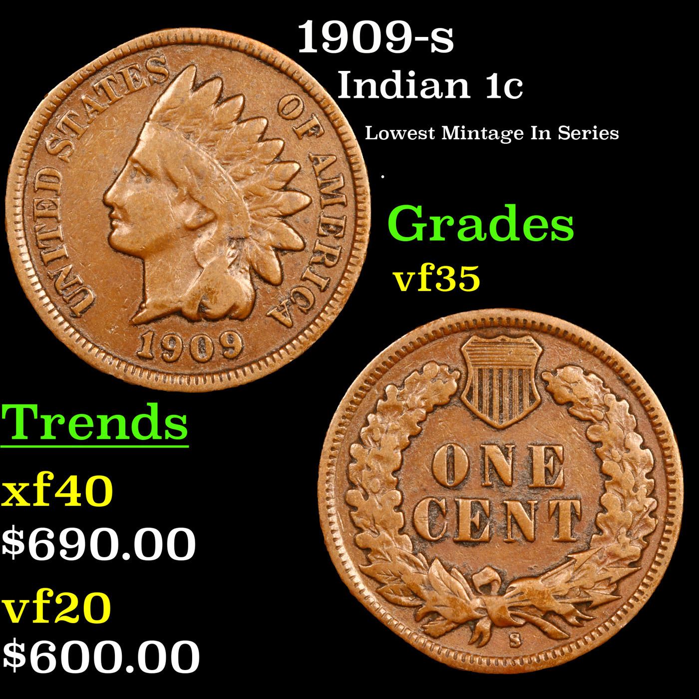 1909-s Indian Cent 1c Grades vf++.