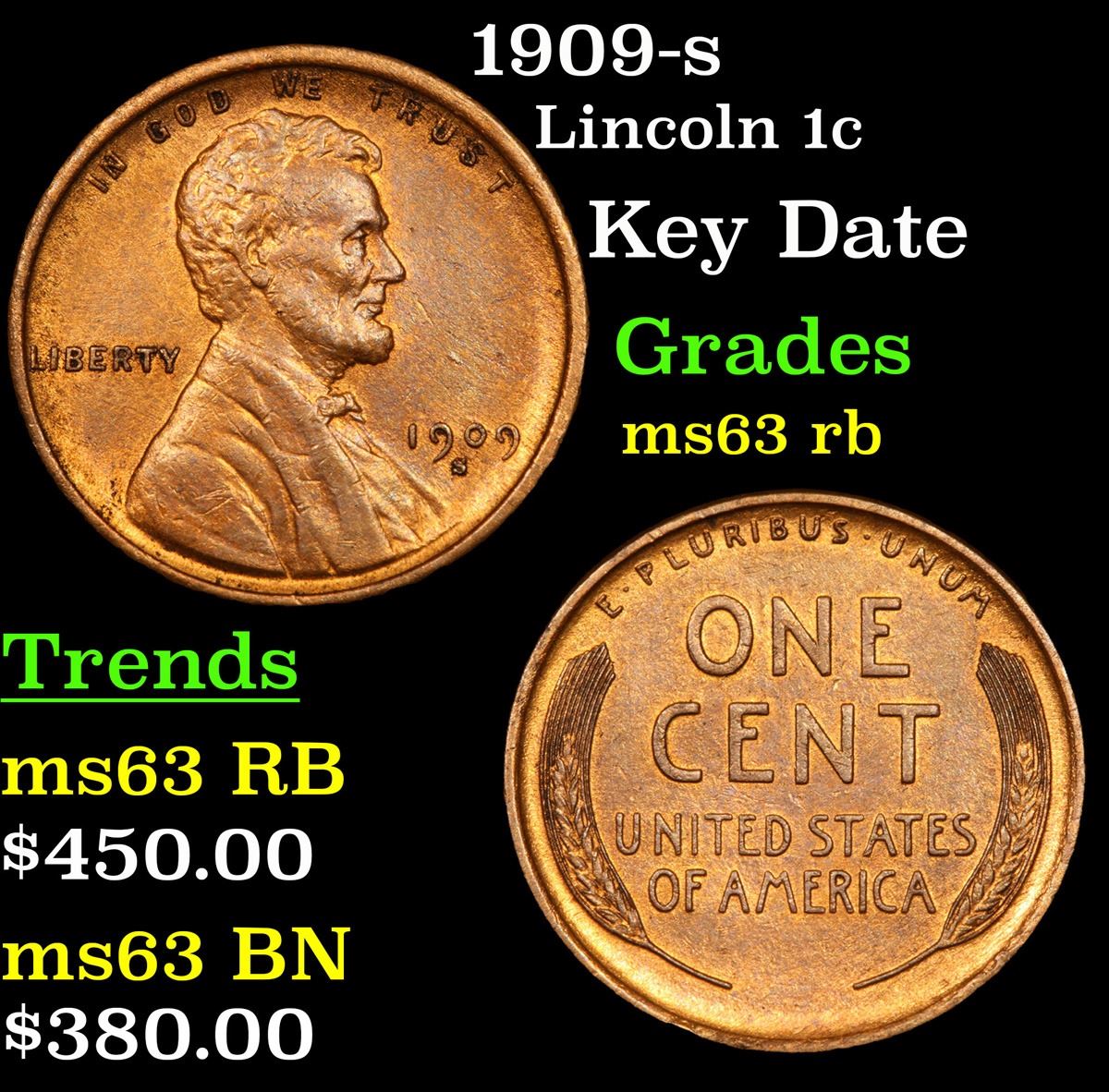 1909-s Lincoln Cent 1c Grades Select Unc RB.
