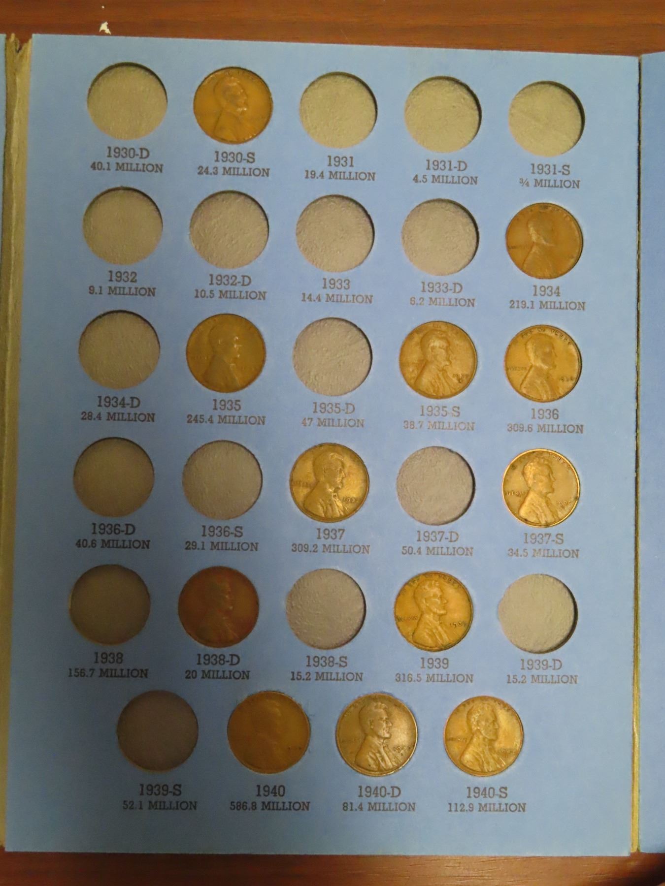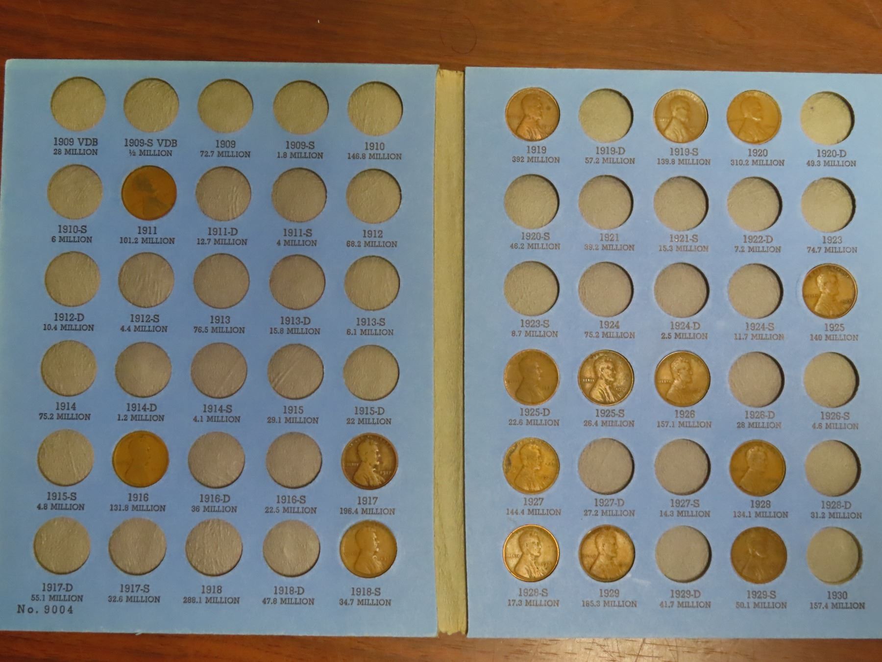 1909 to 1940 lincoln head cent folder with 28 USA 1 cent assorted years 1911 to 1940