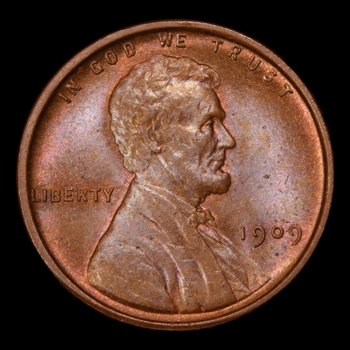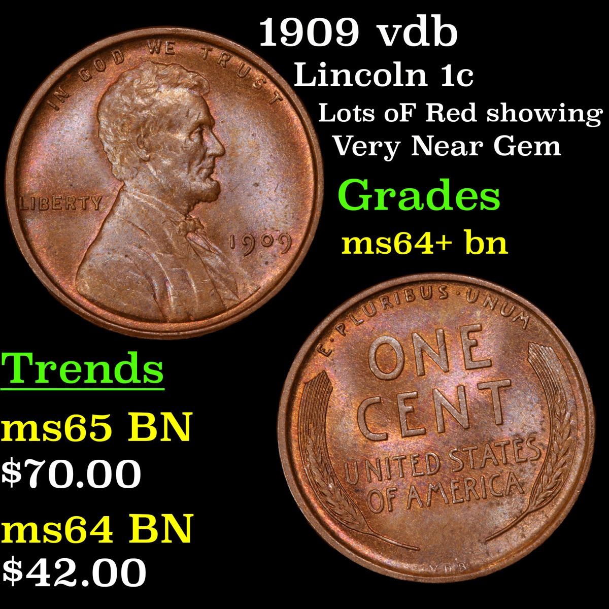 1909 vdb Lots oF Red showing Very Near Gem Lincoln Cent 1c Grades Choice+ Unc BN. Always sought after date. Always popular.
