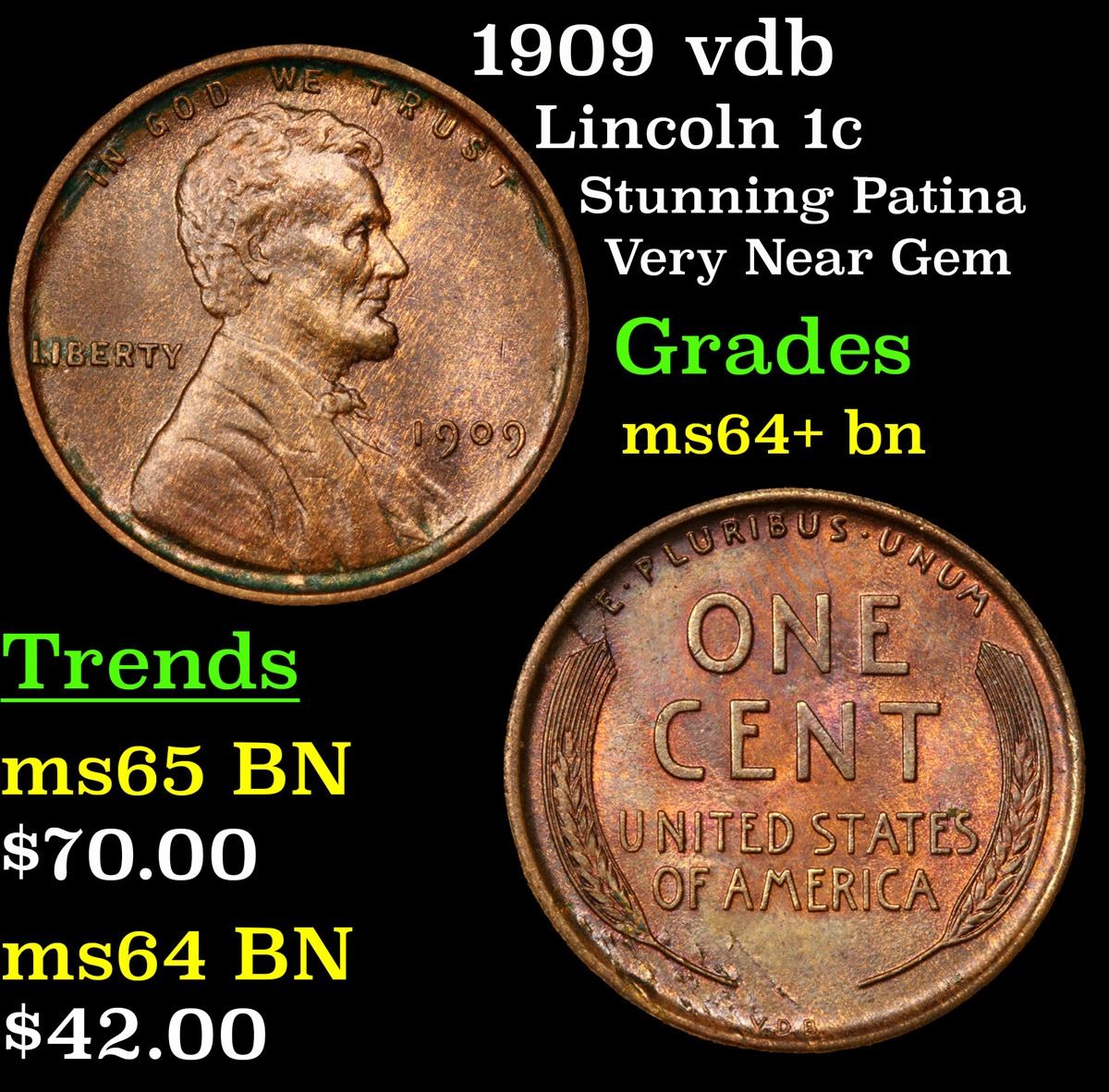 1909 vdb Lincoln Cent 1c Grades Choice+ Unc BN. Always sought after date. Always popular.