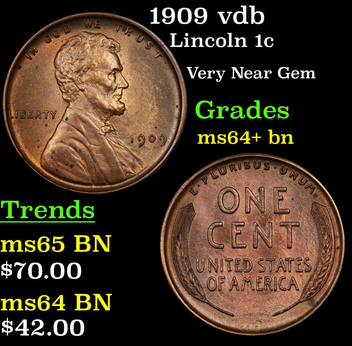 1909 vdb Lincoln Cent 1c Grades Choice+ Unc BN. Always sought after date. Always popular.