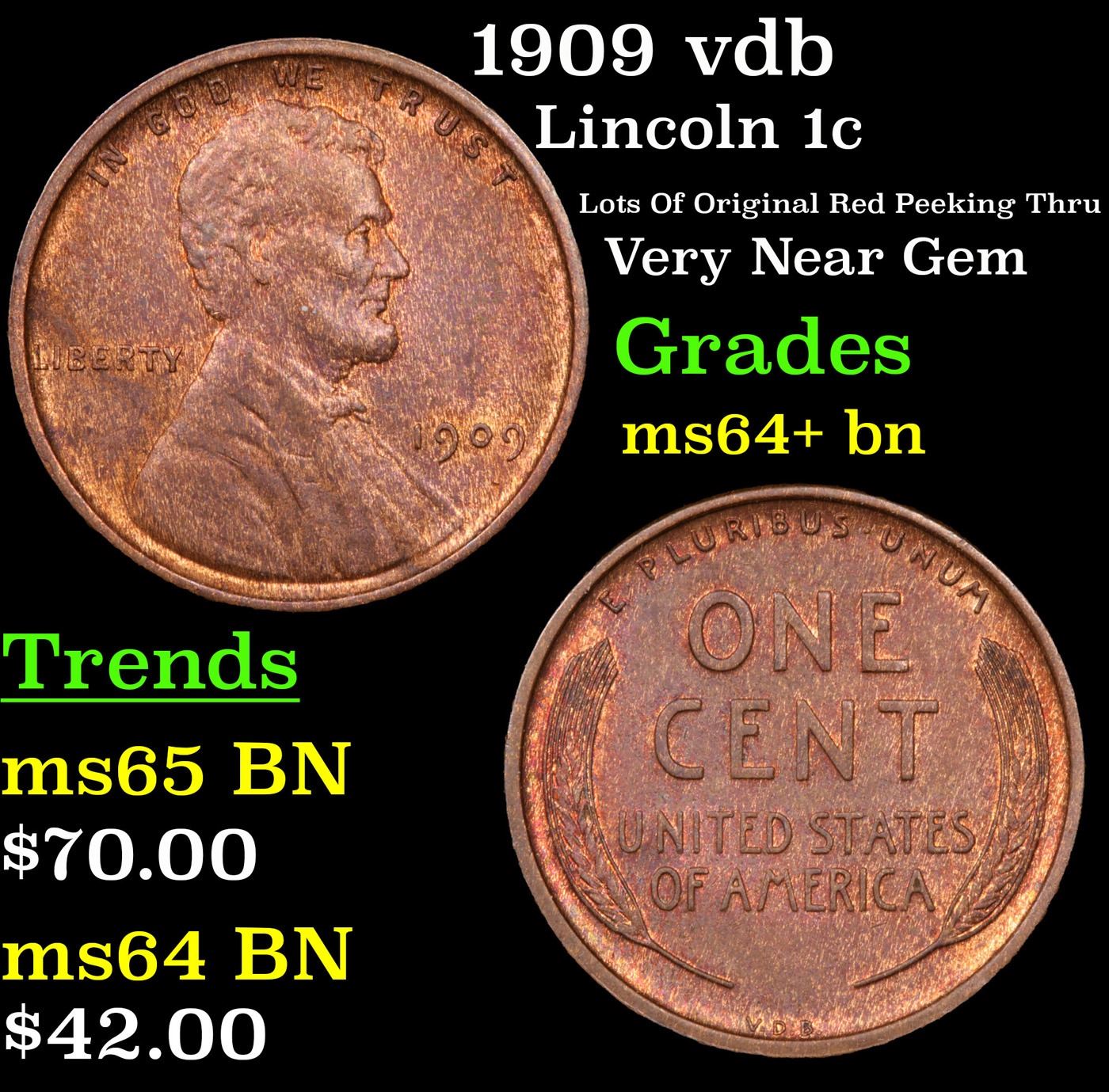 1909 vdb Lincoln Cent 1c Grades Choice+ Unc BN. Always sought after date. Always popular.